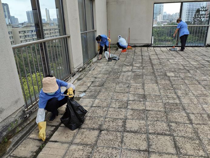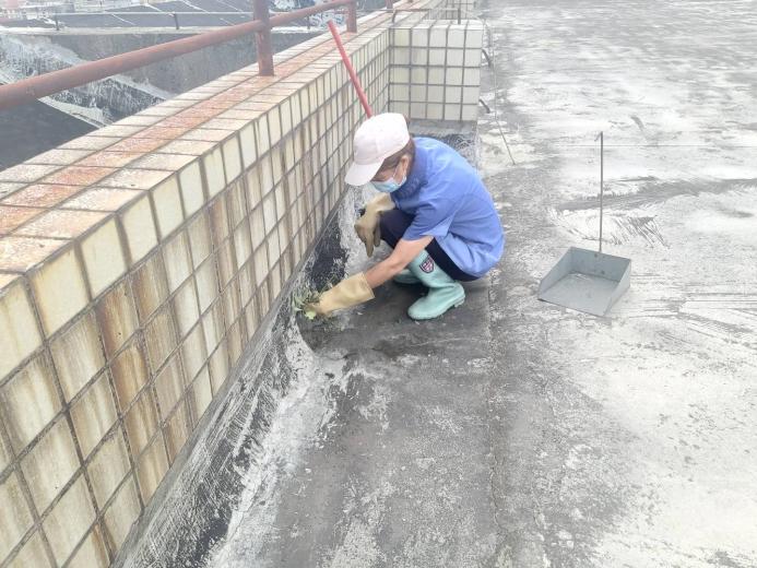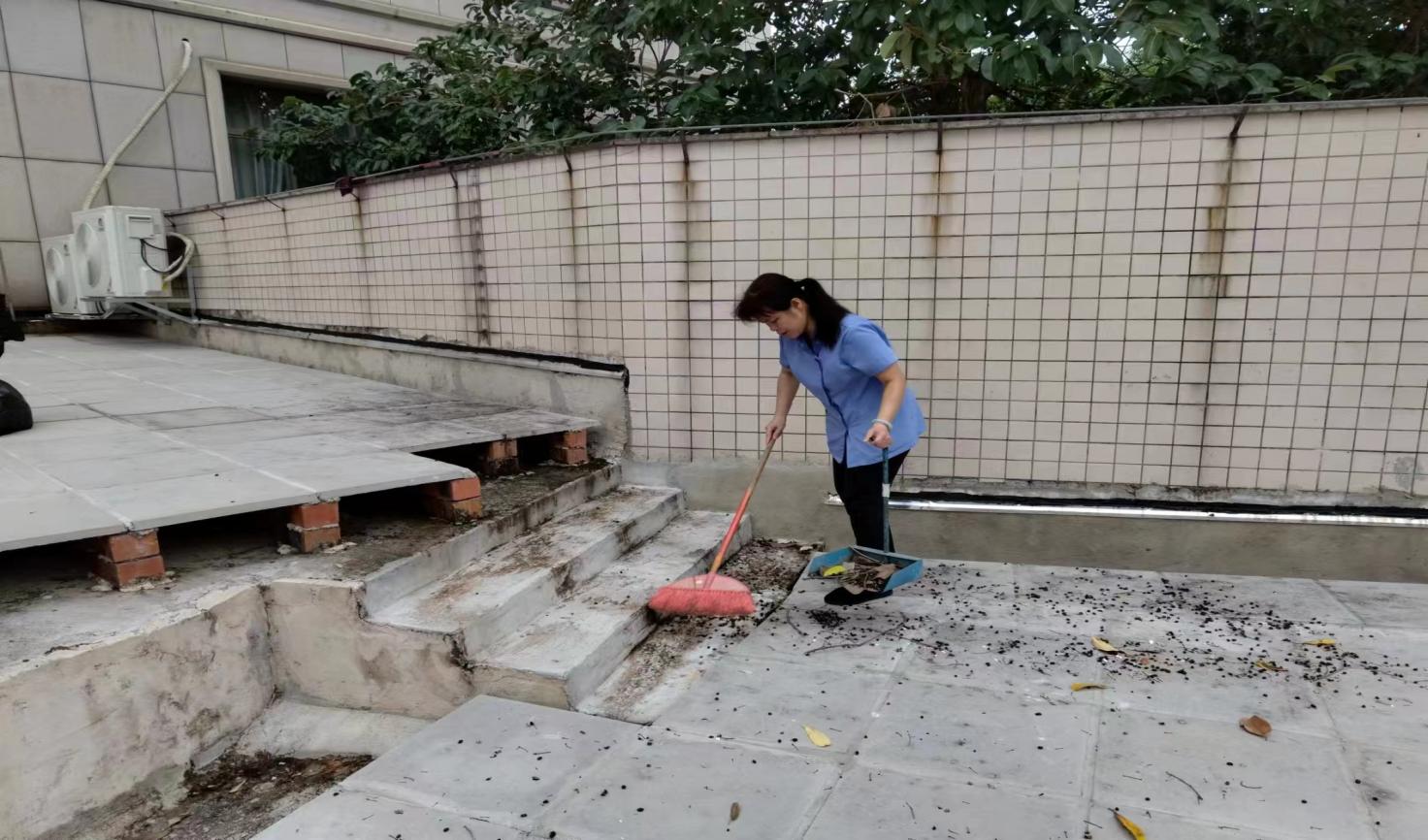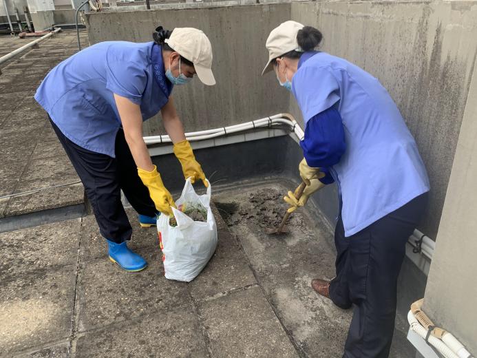 对语言中心、二教、三教、六教、十教、十一教、十五教、十六教和研究生院教室等教学楼宇进行日常卫生保洁服务工作,本周清理公共楼宇外围排水设施49次,清理公共楼宇天台排水设施46处。