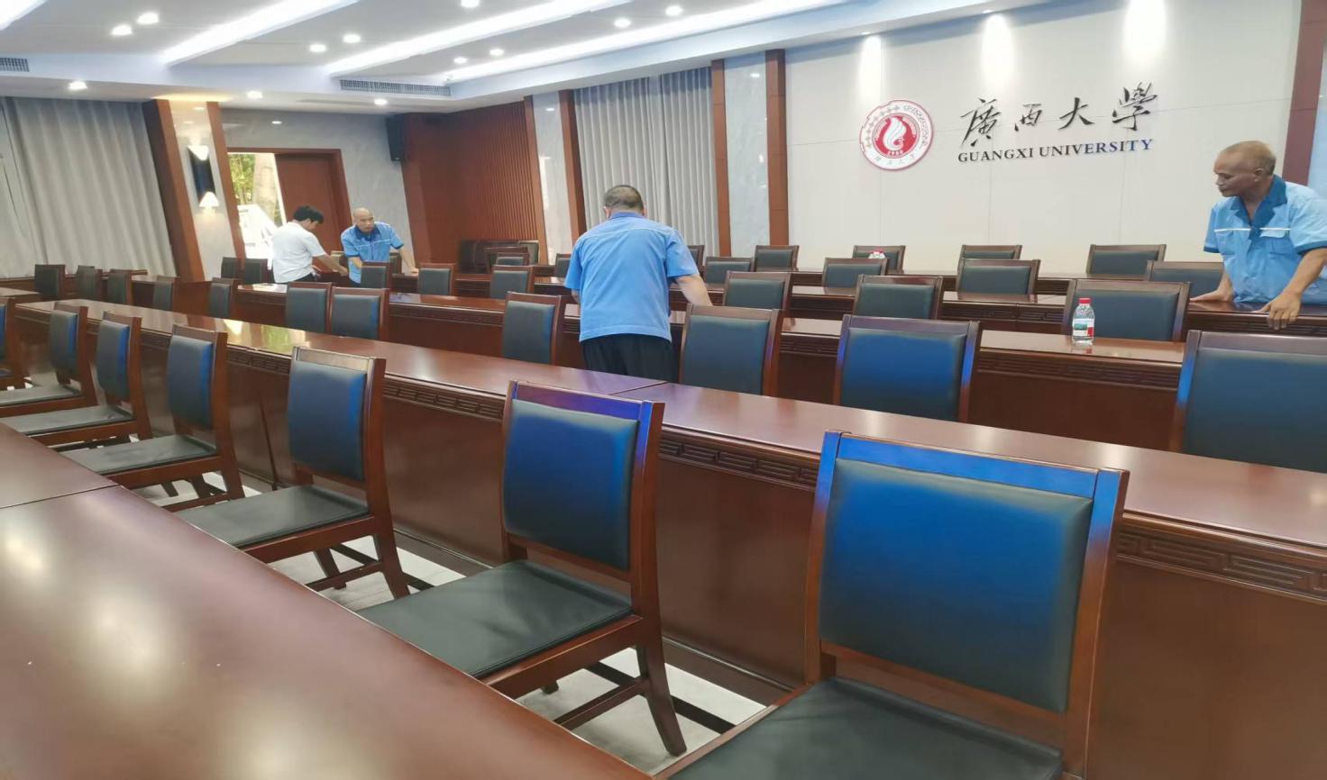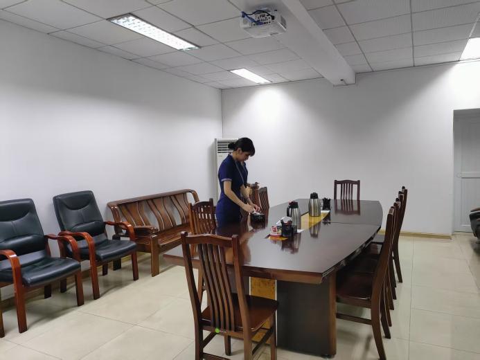 做好会场布置、会议前后保洁及会务各项服务共计55场,其中重要接待15场。