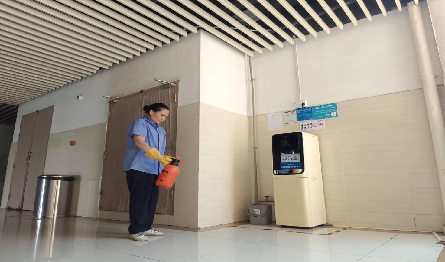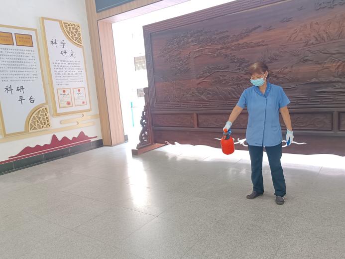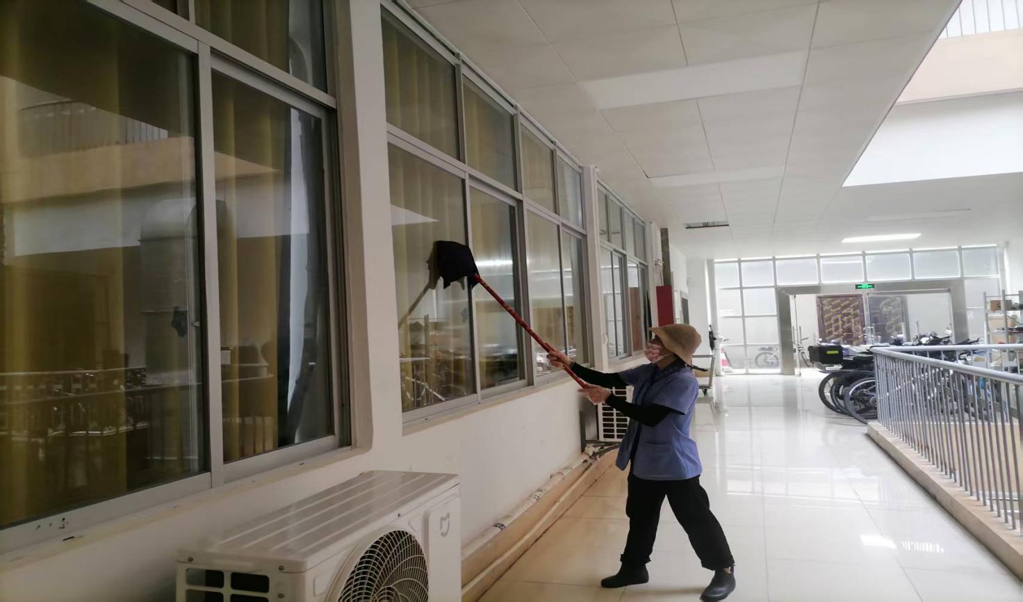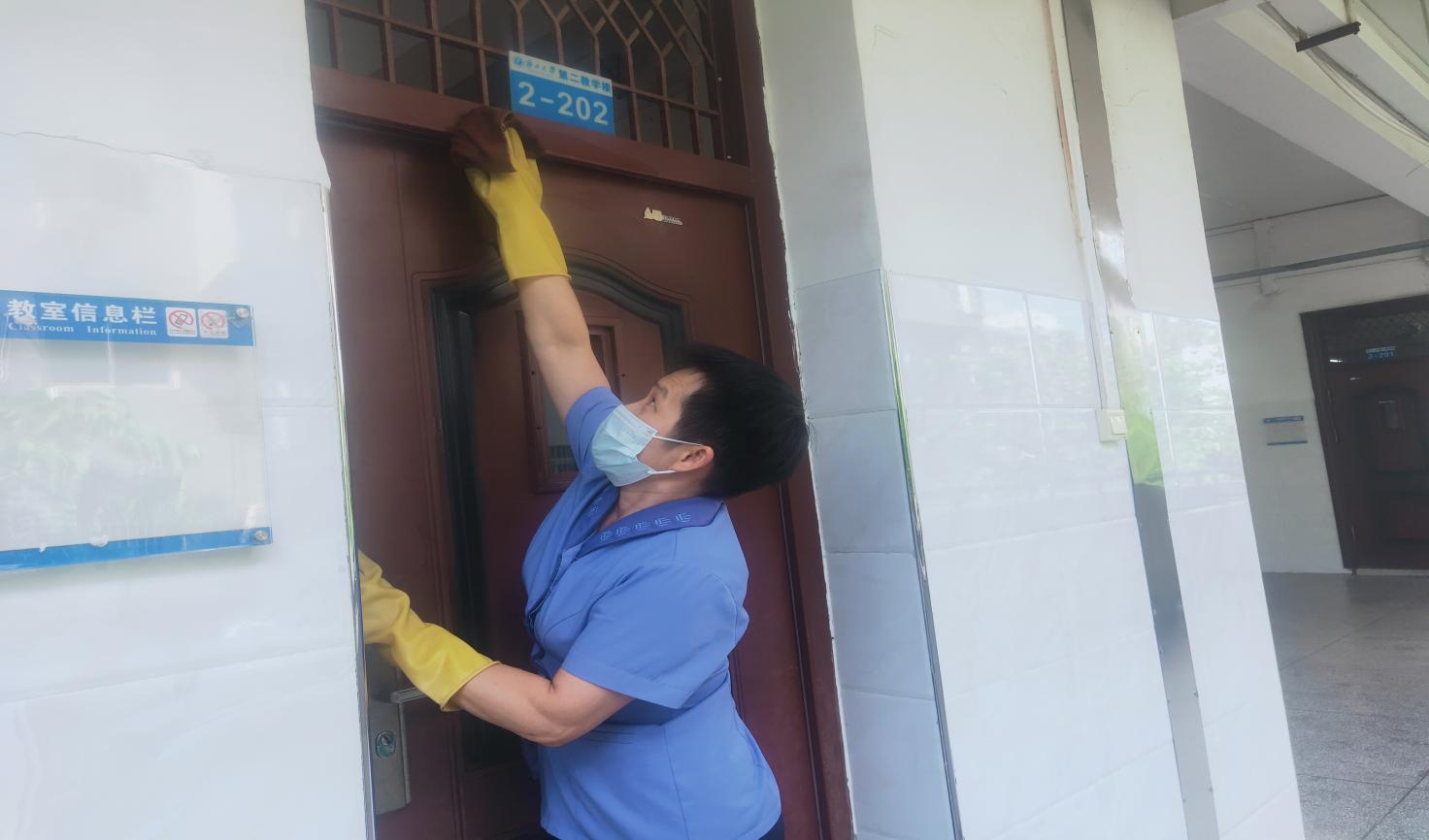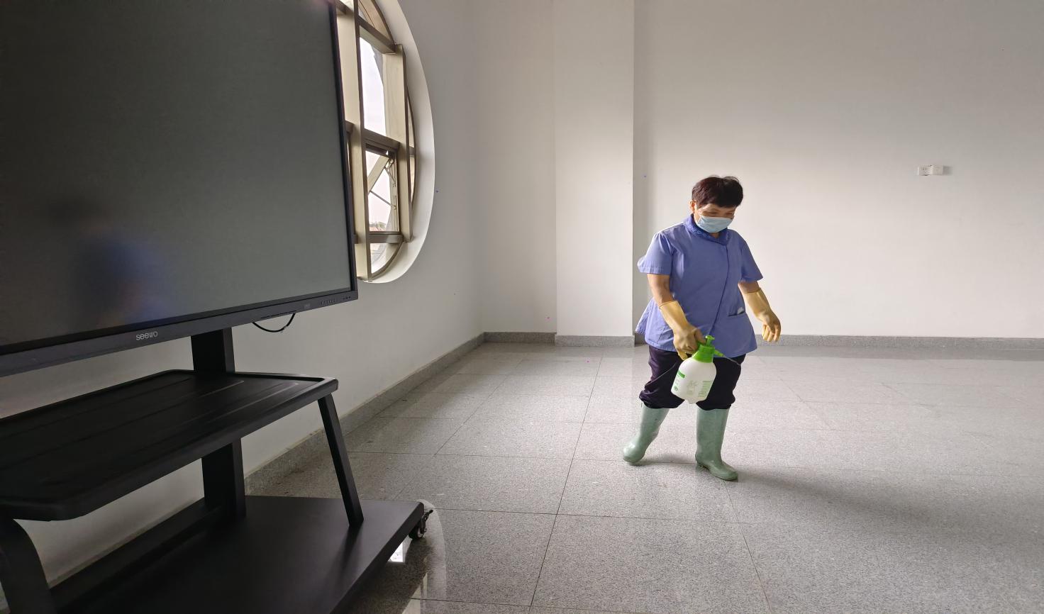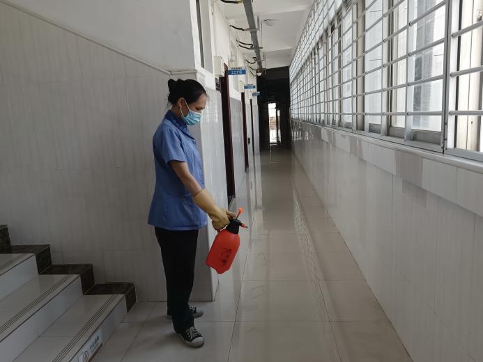 对公共教学楼宇的楼梯、走廊、门把手、课桌椅、电脑键盘、鼠标、水龙头、楼梯扶手、电梯间及按钮等高频接触表面进行重点杀菌消毒477次。