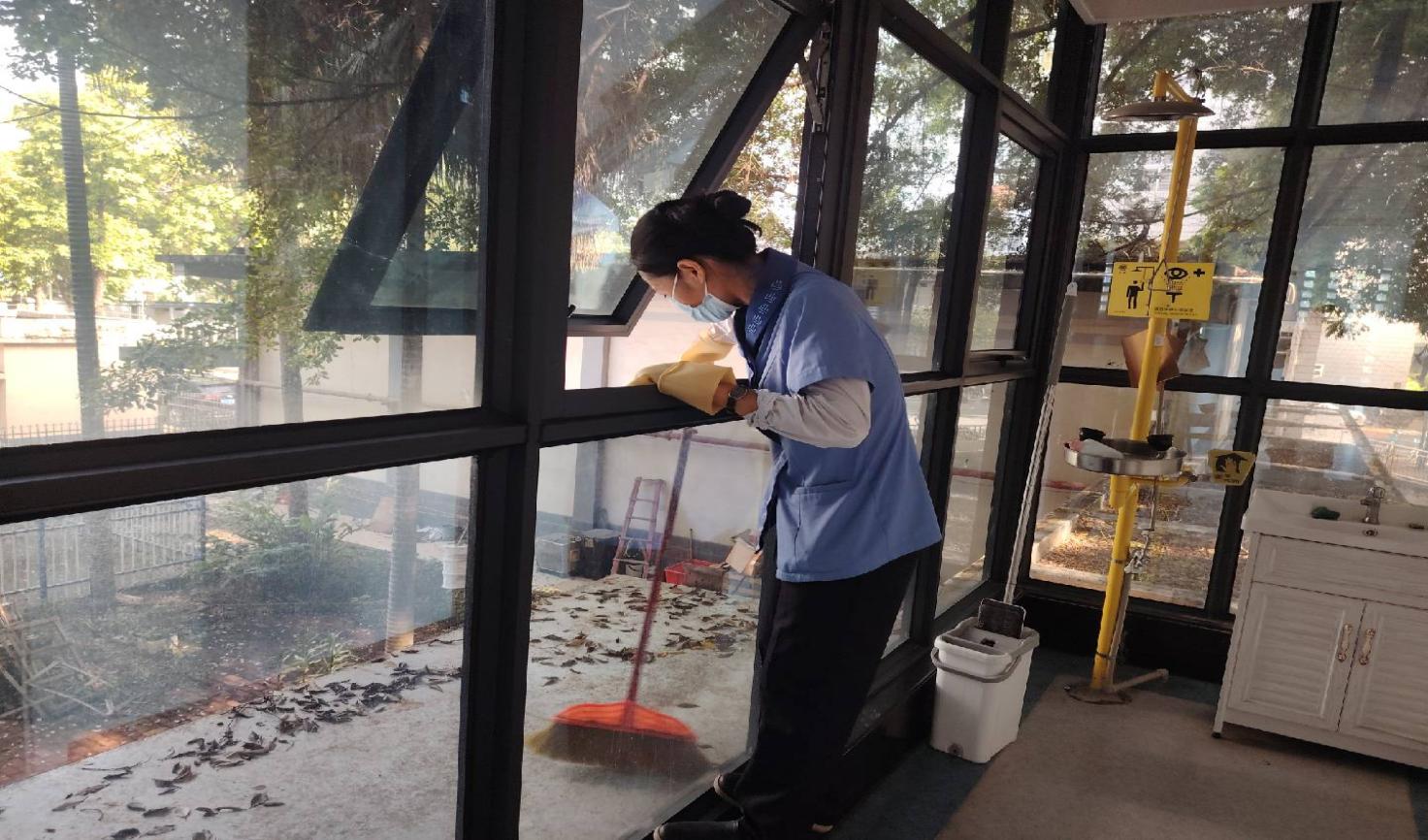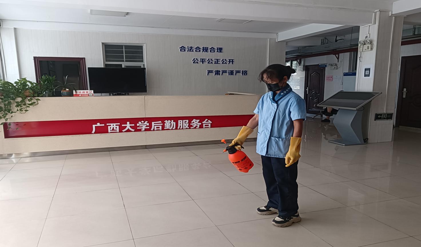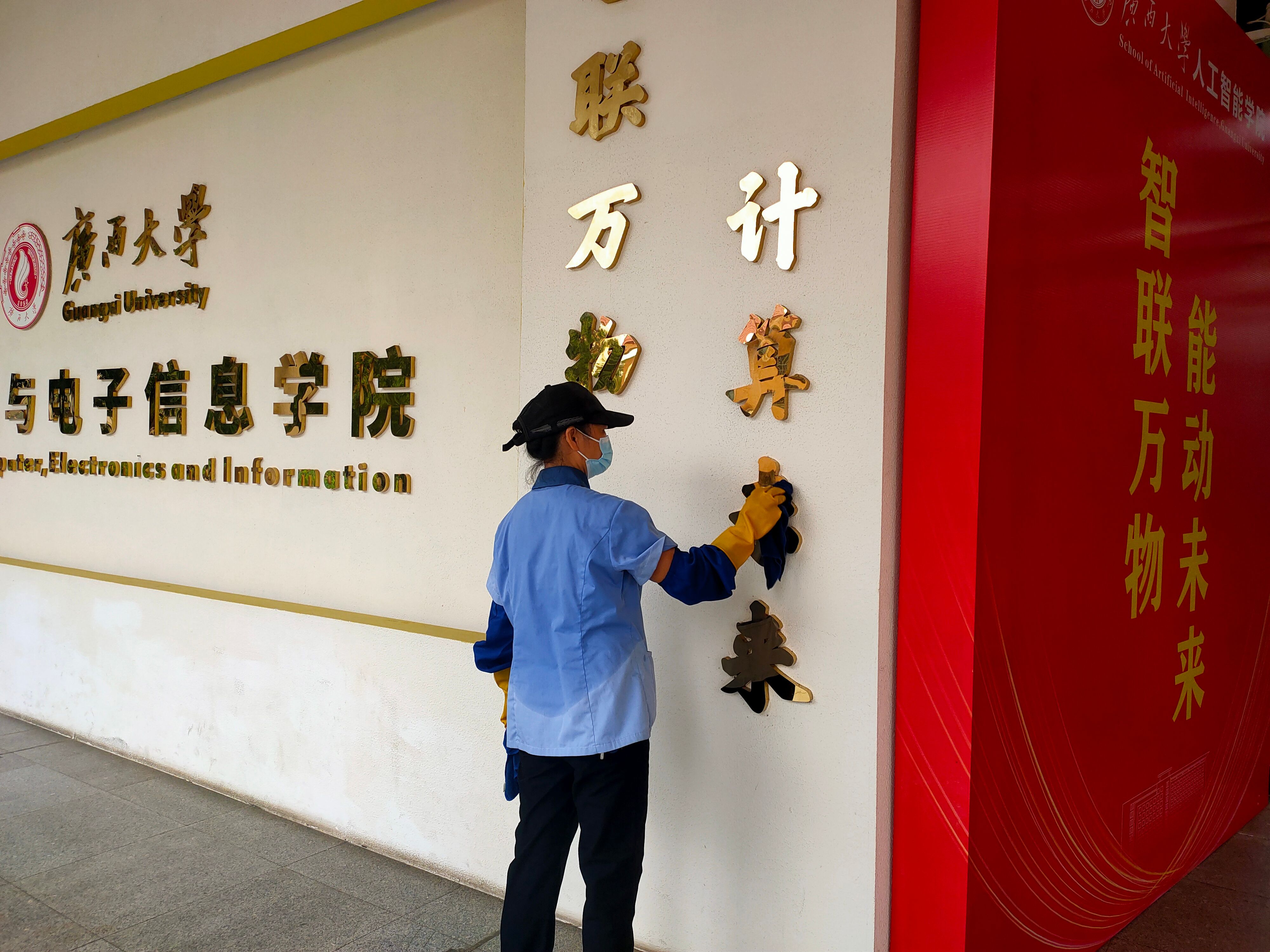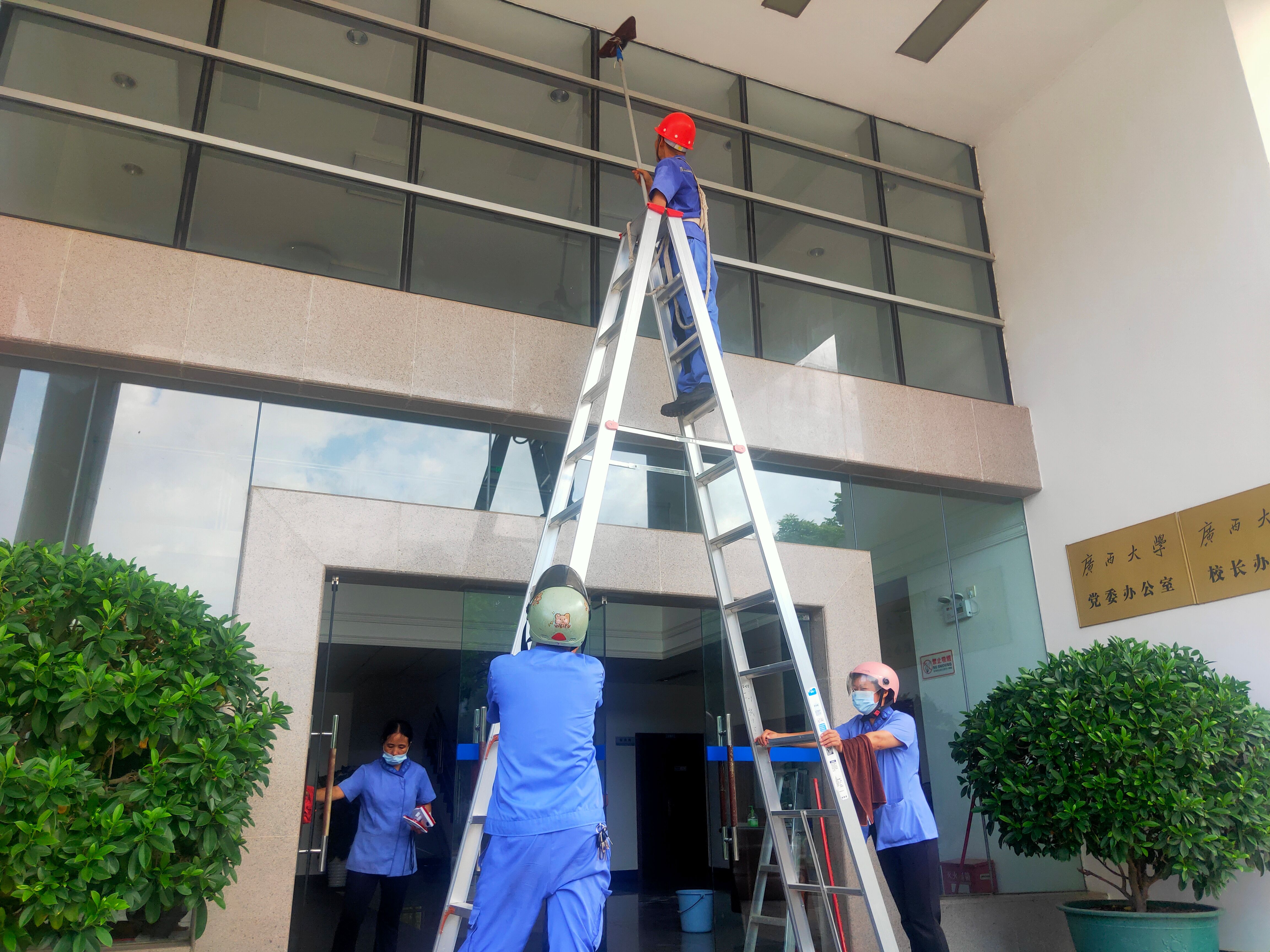 对中国-东盟研究院、北校园甘蔗育种研究中心、环境学院、继续教育学院、农学院等26个学院进行日常卫生保洁工作。