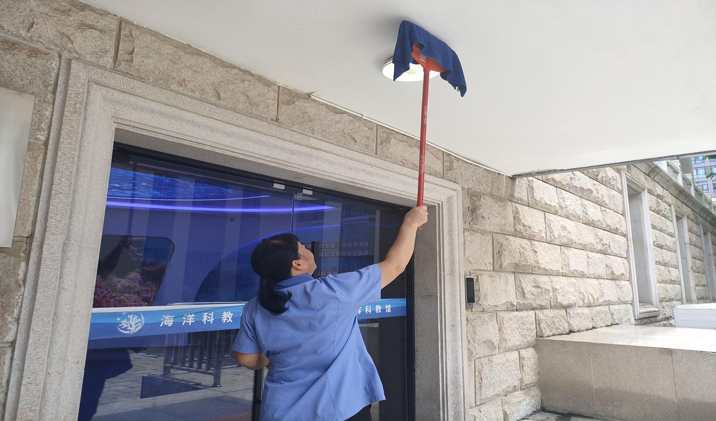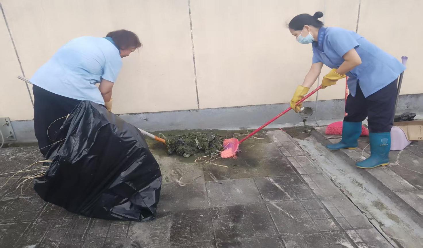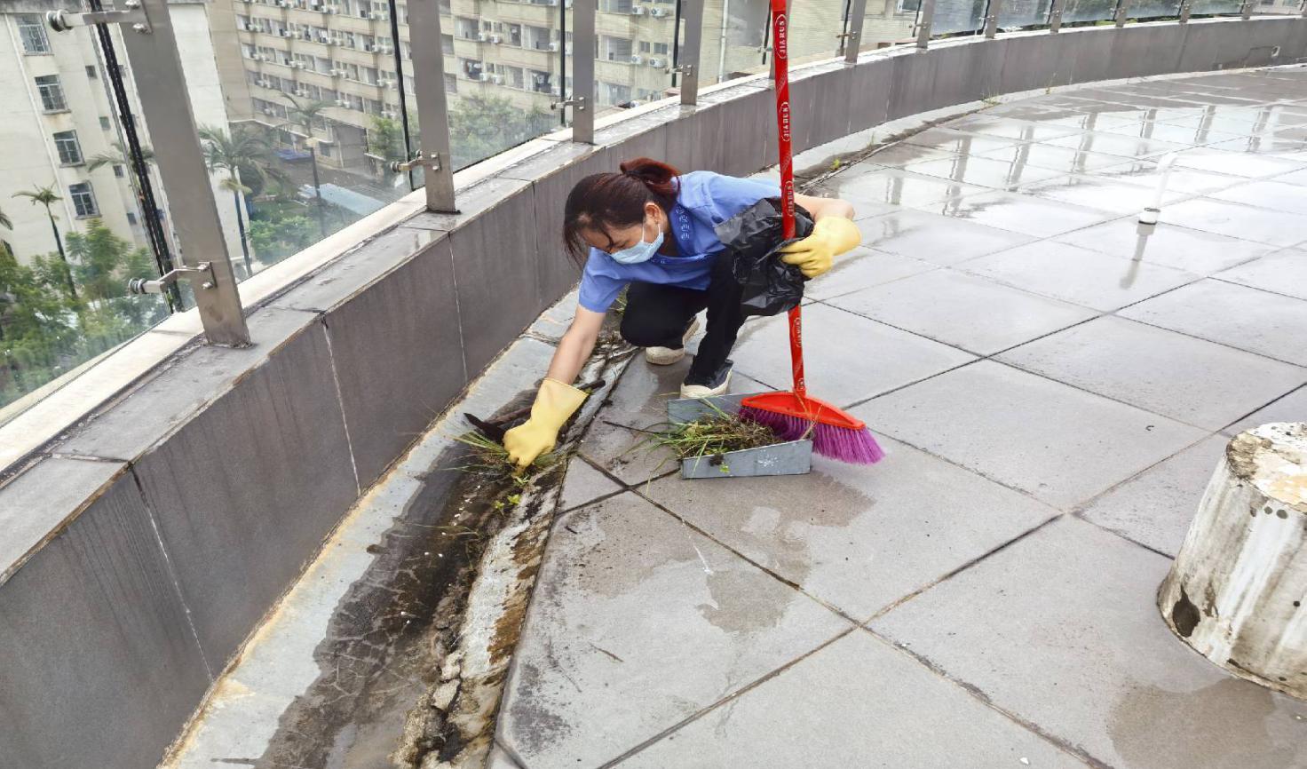 对语言中心、二教、三教、六教、十教、十一教、十五教、十六教和研究生院教室等教学楼宇进行日常卫生保洁服务工作,清理公共楼宇外围排水设施327次,清理公共楼宇天台排水设施287处。