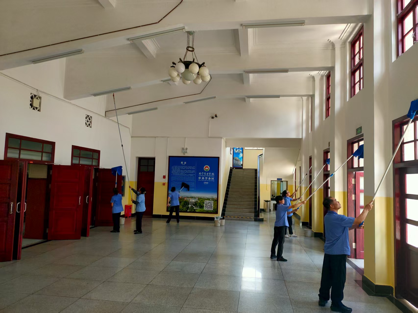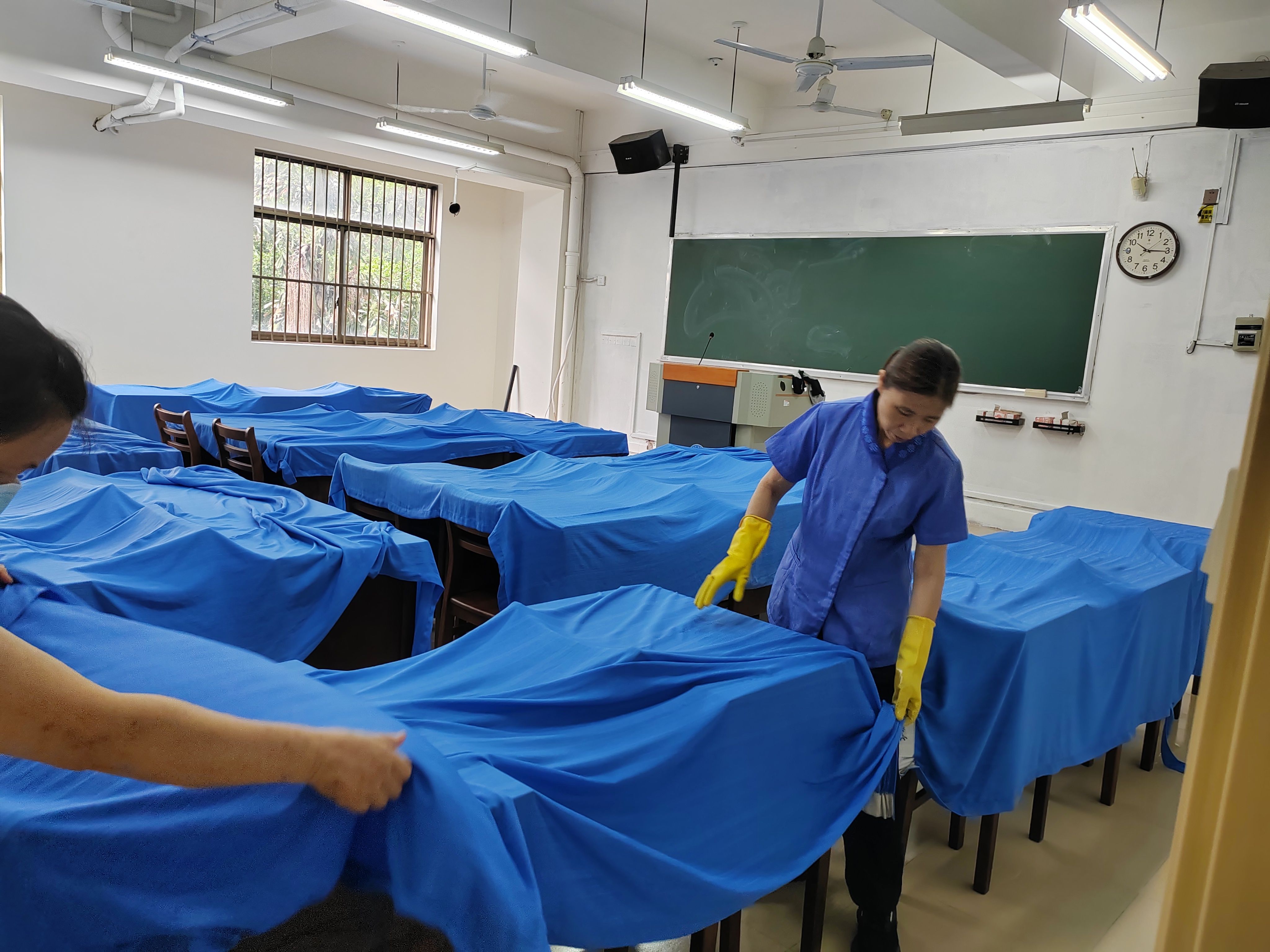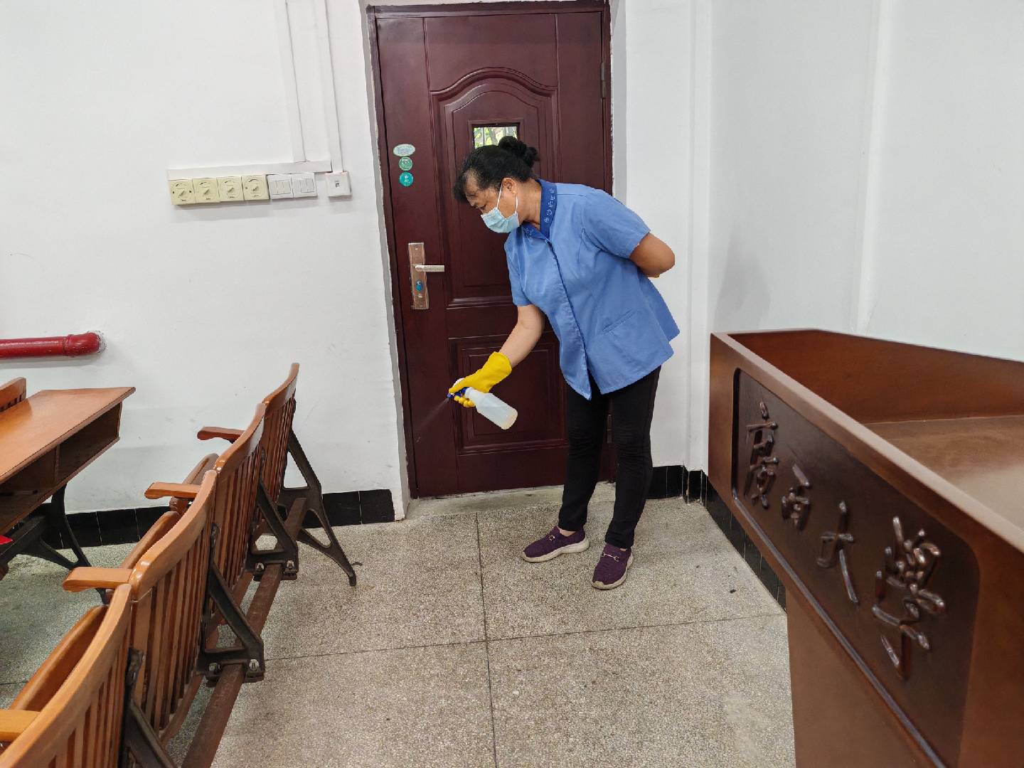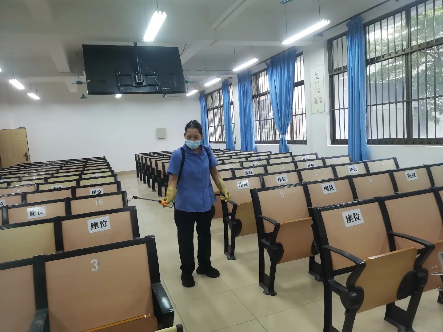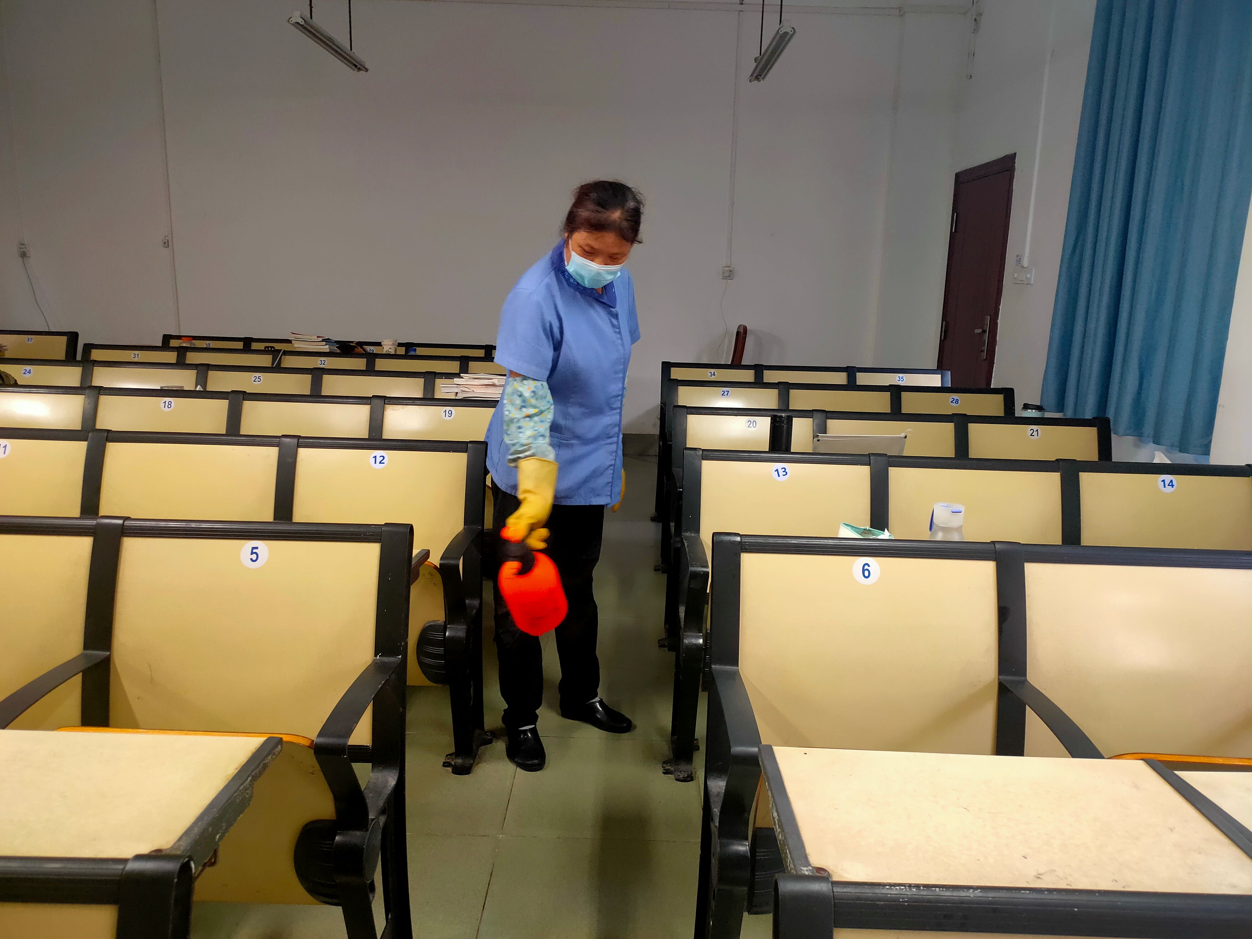 对公共教学楼宇的楼梯、走廊、门把手、课桌椅、电脑键盘、鼠标、水龙头、楼梯扶手、电梯间及按钮等高频接触表面进行重点杀菌消毒3926次。