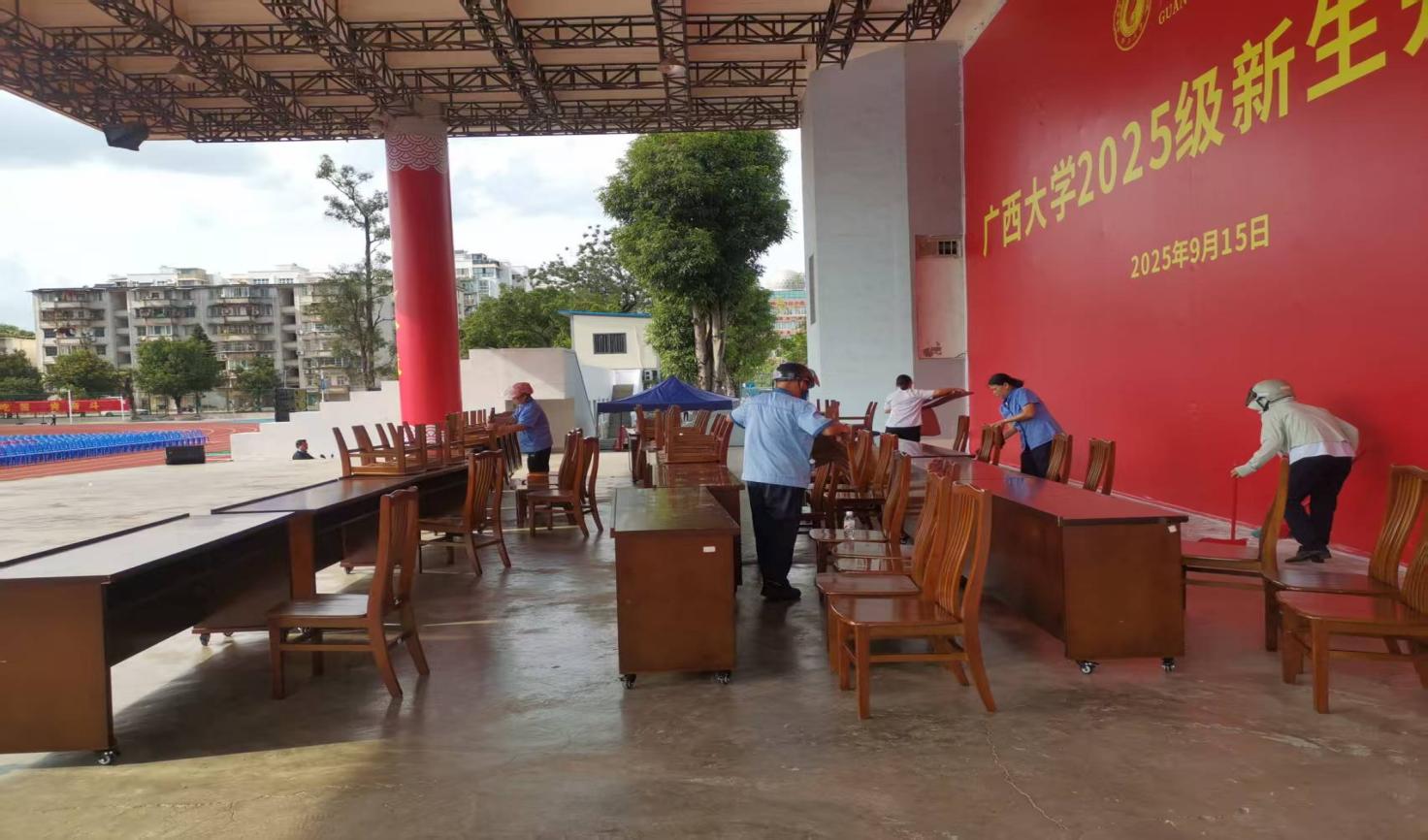 三、2025级新生开学典礼前主席台布置工作。