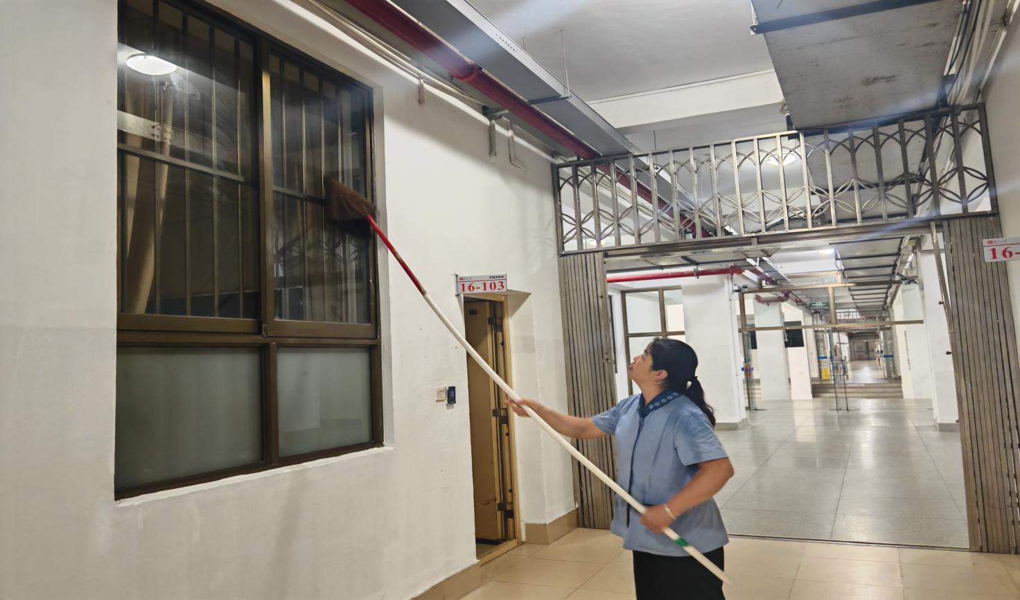 学院楼宇走廊窗台清洁