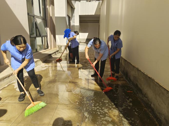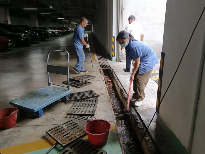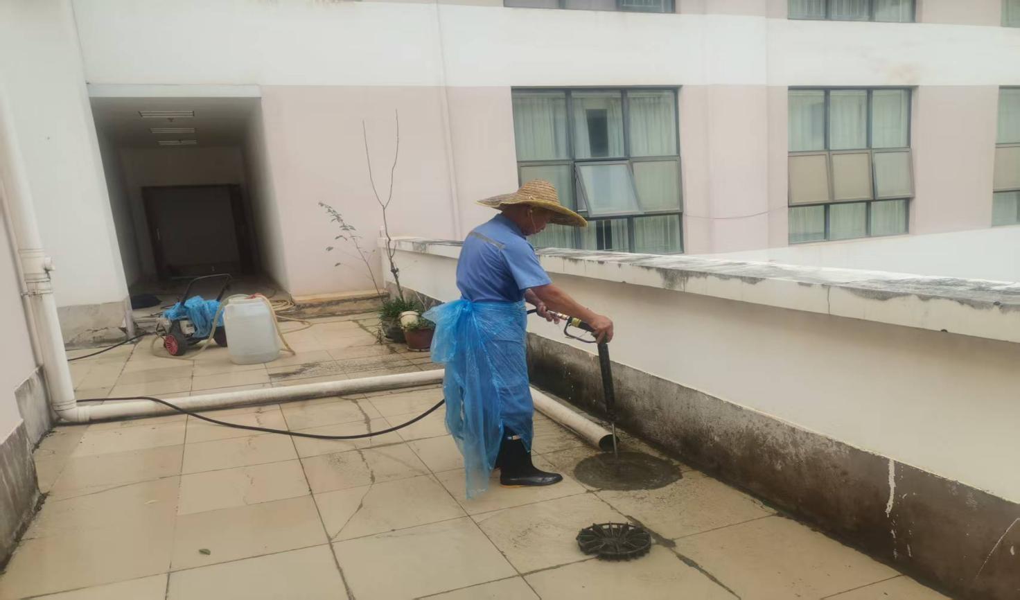 对语言中心、二教、三教、六教、十教、十一教、十五教、十六教和研究生院教室等教学楼宇进行日常卫生保洁服务工作,本周清理公共楼宇外围排水设施53次,清理公共楼宇天台排水设施46处。