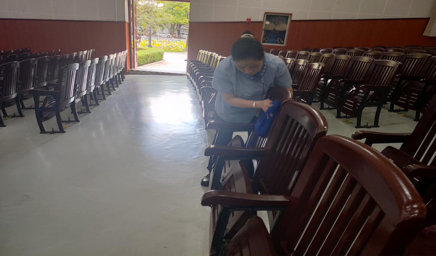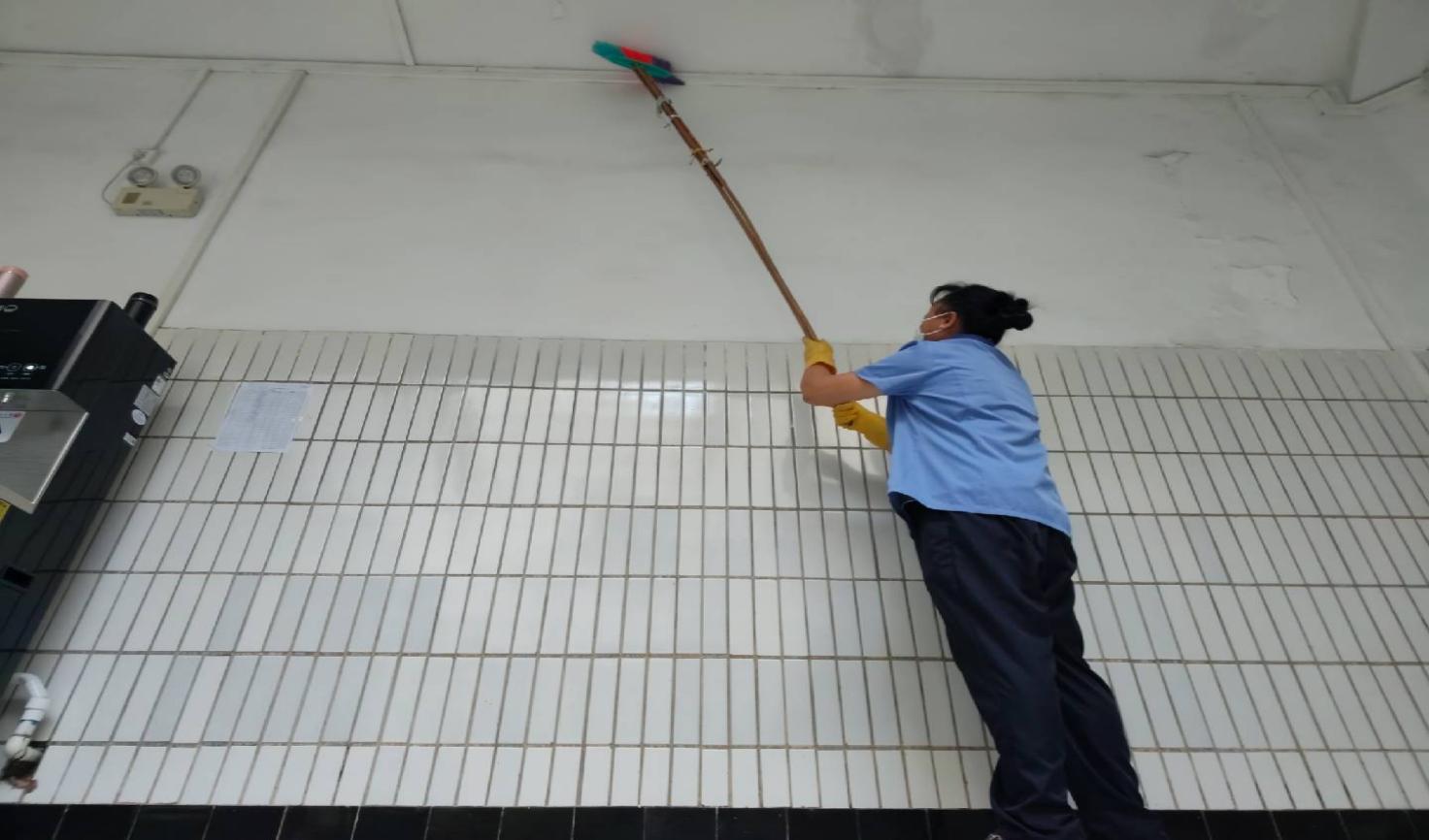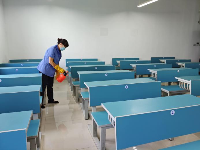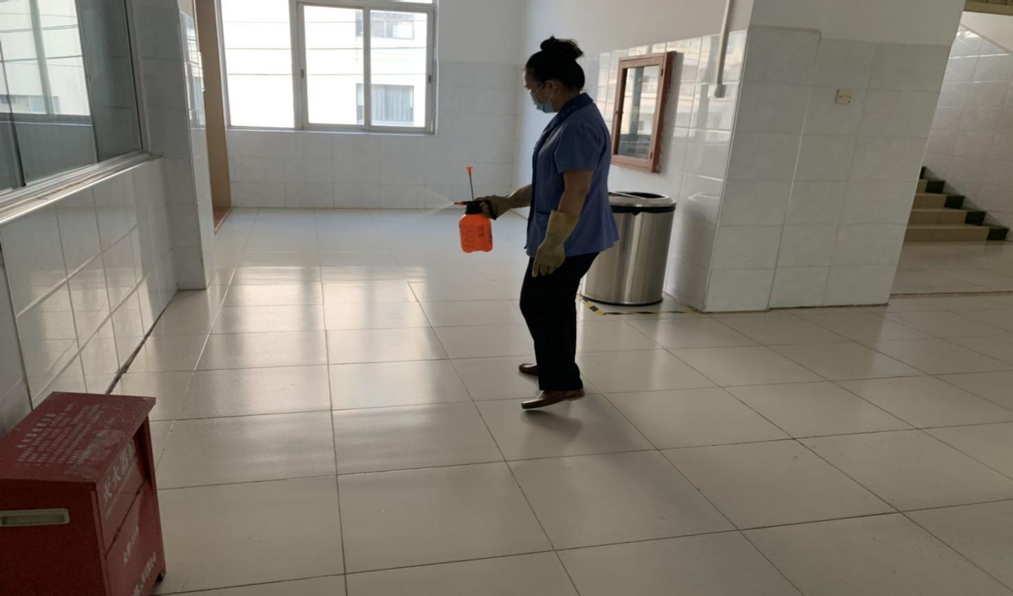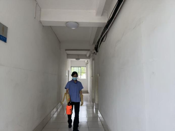 对公共教学楼宇的楼梯、走廊、门把手、课桌椅、电脑键盘、鼠标、水龙头、楼梯扶手、电梯间及按钮等高频接触表面进行重点杀菌消毒536次。
