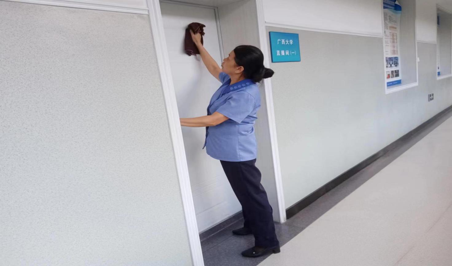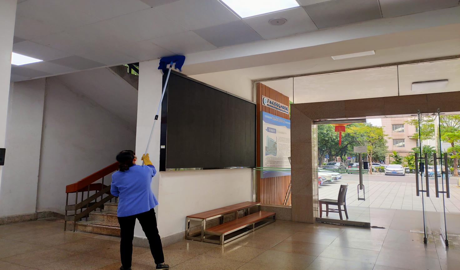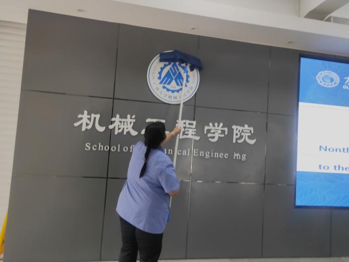 对物理学院、电气工程学院、机械学院、中国-东盟经济学院、林学院、土木学院结构平台等26个学院进行日常卫生保洁工作。