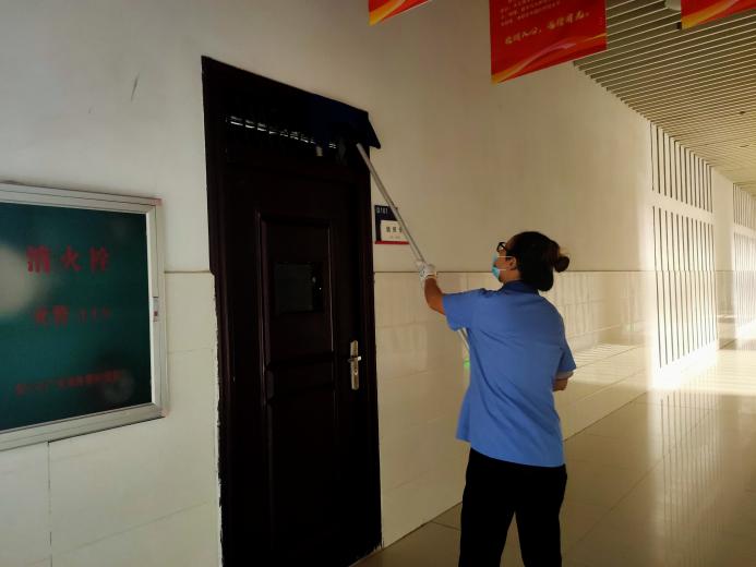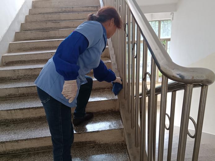 对公共教学楼宇的楼梯、走廊、门把手、课桌椅、电脑键盘、鼠标、水龙头、楼梯扶手、电梯间及按钮等高频接触表面进行重点杀菌消毒488次。