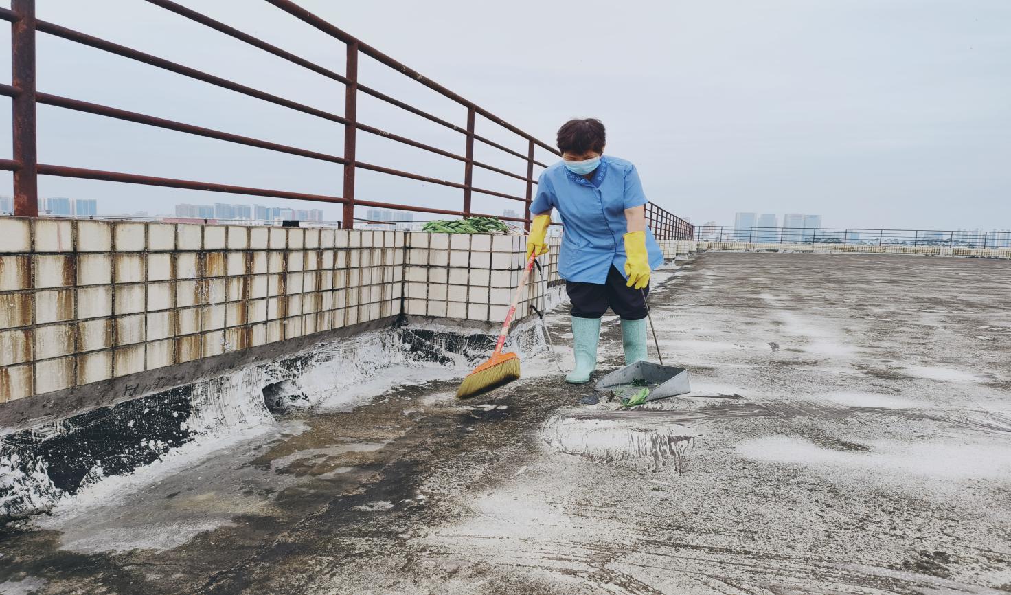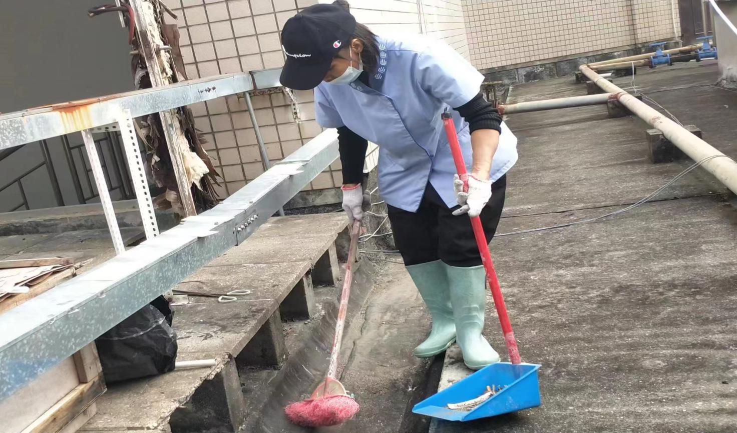 环境学院楼宇天台排水设施清理