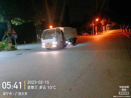 为使2023春季学期返校师生们有更好的环境卫生新貌,后勤服务管理岗联合物业公司制定计划,在开学前对校园内进行环境卫生大扫除工作,主要是清扫教学区周边,主干道两旁,重点区域等处的积存落叶,以及对校内各区域的杂草进行清理和各校大门主干道进行高压水车清洗路面工作。干干净净迎接师生返校。同时针对开学期间学生宿舍垃圾骤增的情况,加班加点连续清运,保证垃圾日产日清。