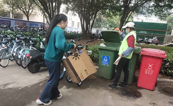 按计划完成垃圾分类督导及垃圾清运工作,组织专人重点在校园主干道进行定点垃圾分类督导与宣传,并对校园进行全面巡查,及时处理问题。本周共清运生活垃圾约268.8吨,大件垃圾约18.6吨,绿化垃圾约20.5吨。