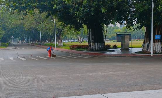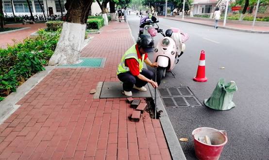 本周继续做好校园各区域环境卫生进行日常清扫保洁及专项消毒消杀工作,环卫人员每日清晨5点半开始清扫作业,作业面积近80万平方米,各校大门消杀2000平方米;日常对水沟进行持续清理,加强建筑垃圾巡查工作;对公共区域路灯、盖板、路面、健身器材、公共设施设备等问题进行排查,对各主支干道破损路面进行维修,本周共维修公共区域损坏路面8处,维修井盖盖板5处。
