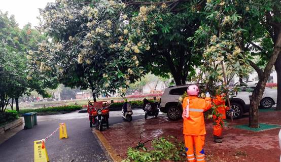 博萃路处理树上白色垃圾