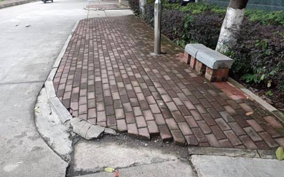 东校园东区45栋西面路沿石破损维修前