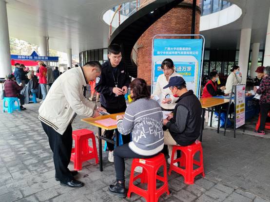 2. 3月15日后勤基建处联合西大社区、南宁中燃公司、西大派出所、博世科物业、民生银行等单位在大学生活动中心开展学雷锋主题公益活动。活动内容有反诈骗、禁毒宣传、燃气使用安全知识宣传、交通安全宣传、垃圾分类宣传、辨识假币、法律咨询、眼科、牙科义诊、免费理发、为85岁以上的独居老人提供代买药品、粮食以及检修水电等贴心服务。