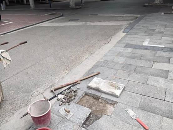 公共区域维修板块继续做好校内公共区域、人行道的路沿石、路灯、水沟盖板、健身器材等设施排查、维修、抢修工作;及时对校内雨篦子、井盖等排水系统进行排查、疏通。本周对校内公共区域道路路面、路灯、盖板等维修共约44处,排水口疏通约23次。