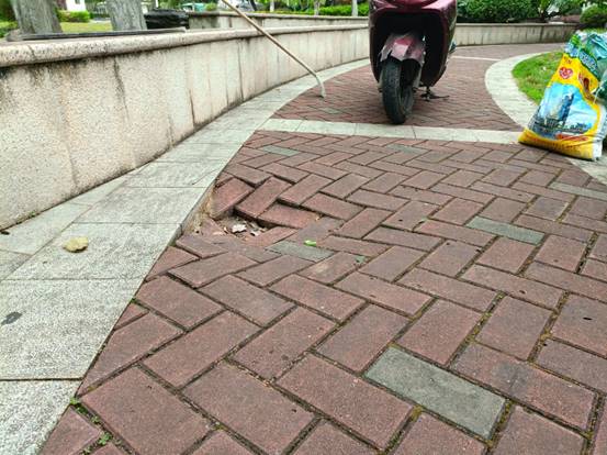 大礼堂旁地砖凹陷维修前
