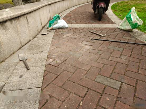 西体育馆东面树池围砖脱落维修后