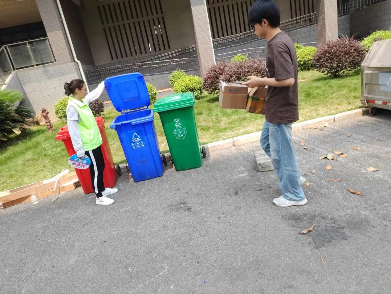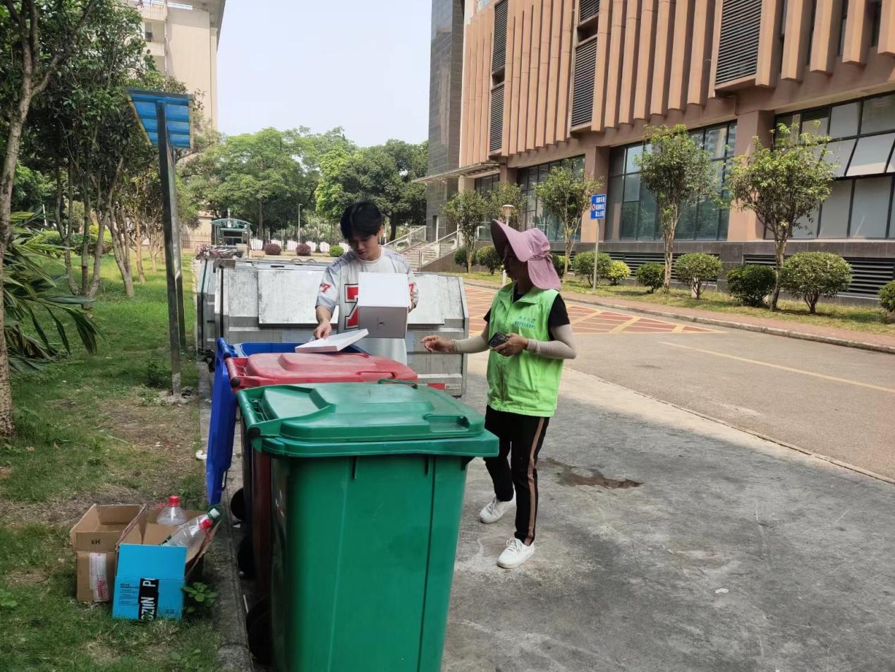 垃圾分类督导:按计划完成垃圾分类督导和宣传、清洁垃圾分类宣传展板、派发垃圾分类宣传单等工作,对校园进行全面巡查,及时处理发现的问题。