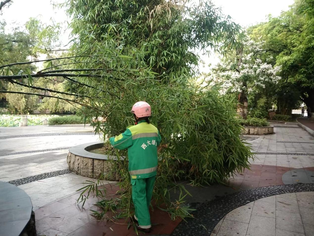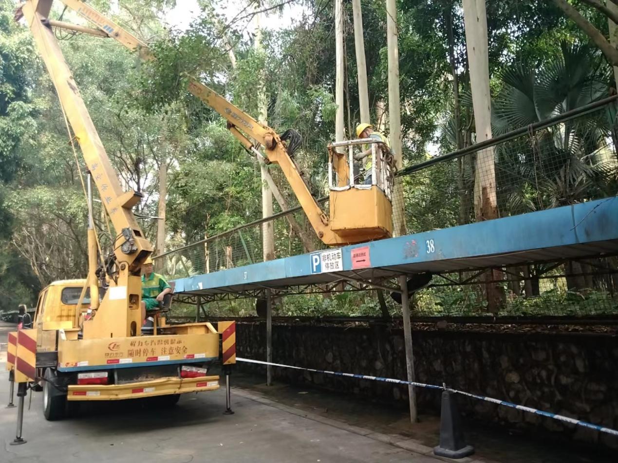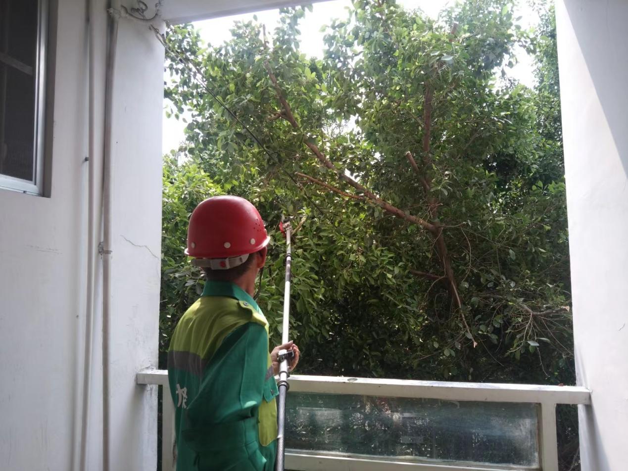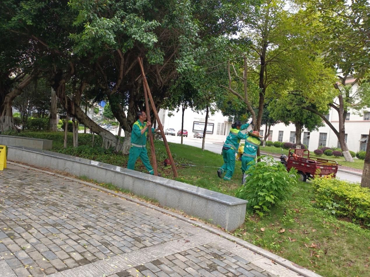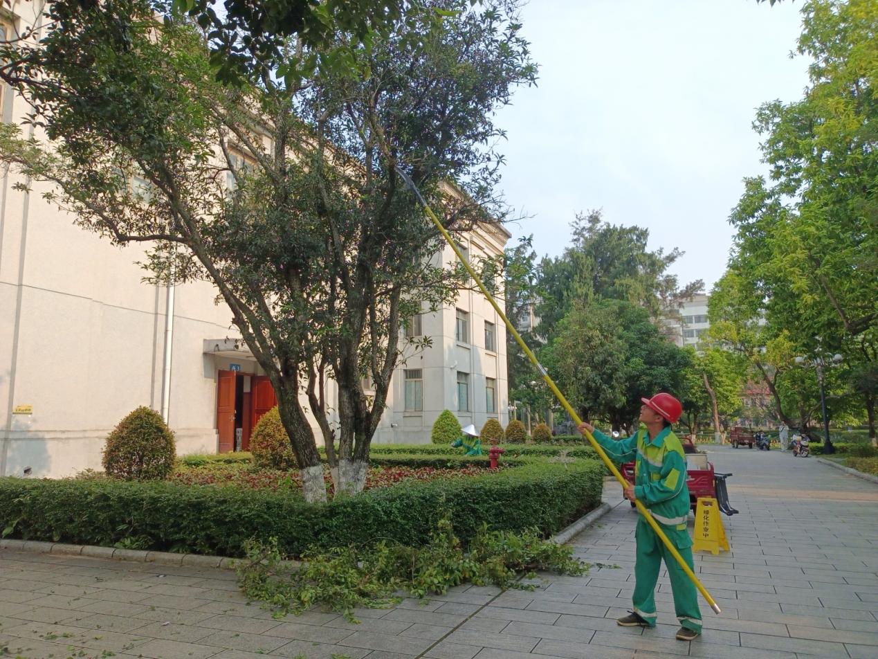 树枝修剪:对君武路、崇文路、学生公寓13、19、27栋、行健学院、生科院、沙塘路、学生公寓6A北面、西中13栋、西门、西北36栋西面、外国语学院北面、外培楼周边、东苑饭堂南面、碧云湖、大学生活动中心、南苑路、博萃路、集团大院外围等区域进行枯枝处理、大树截顶、低枝修剪和靠近电线、建筑物、路灯及摄像头等设施的树枝修剪。
