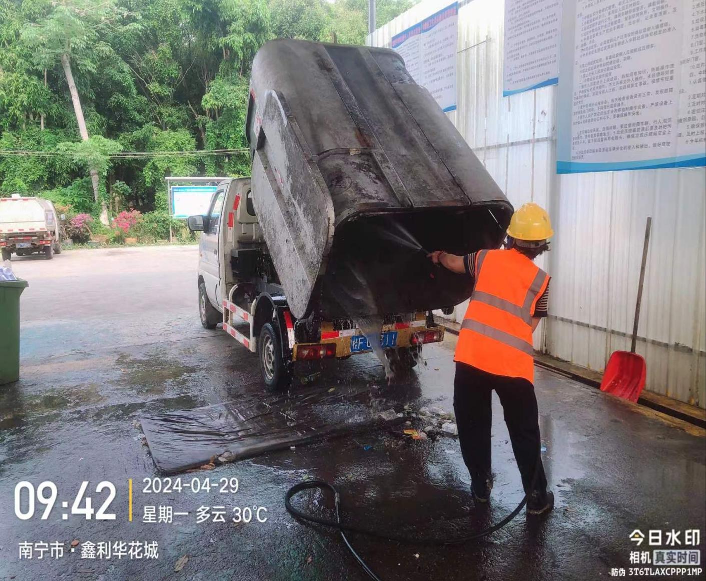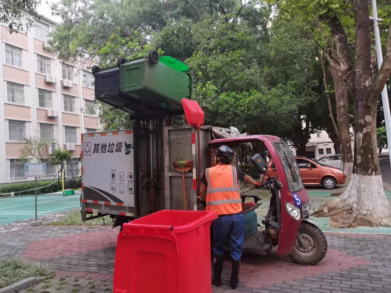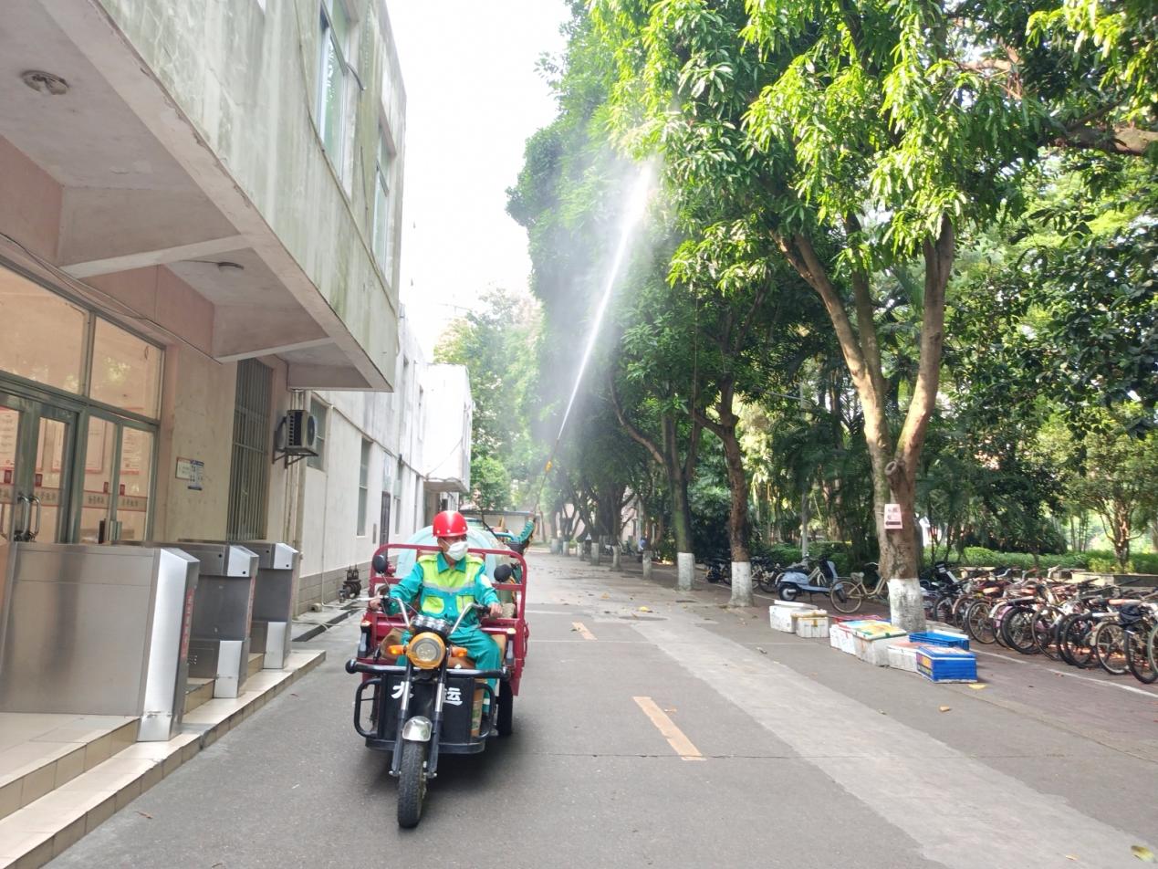 垃圾清运:按规定时间、路线清运校园垃圾,做到垃圾日产日清,并对垃圾桶和勾臂箱进行清洗和消杀。本周清运生活垃圾347.7吨,大件垃圾13.6吨,绿化垃圾36.3吨。