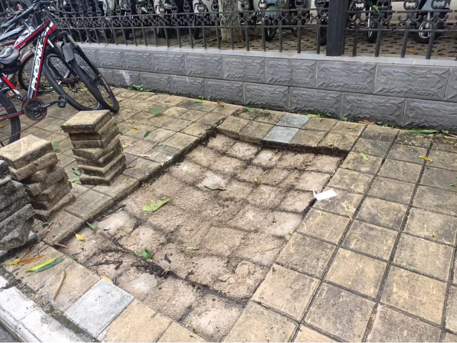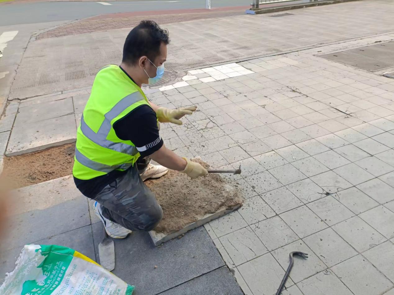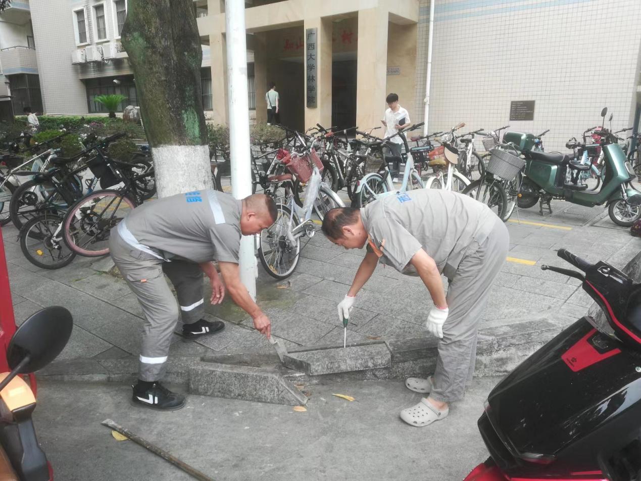 公共区域维修板块继续做好校内公共区域地面、路沿石、路灯、水沟盖板、健身器材等设施排查、维修、抢修工作;及时对校内雨篦子、井盖等排水系统进行排查、疏通。本周对校内公共区域道路路面、路灯、盖板等维修共约36处,排水口疏通约31次。