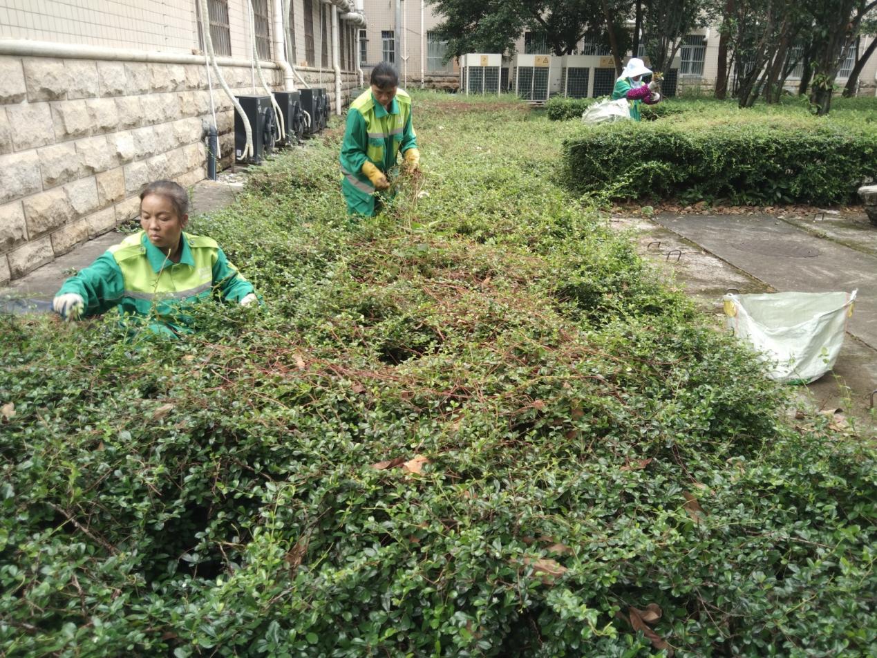 日常养护工作:对育才广场、东东区、东中区、行健学院、南大门、生科院、新东园,六教、君武馆内庭、熊猫园、大礼堂、外培楼、十教、碧云湖、东体育馆、土木实验平台、集团大院外围、物理楼、校办周边等区域进行拔杂草、病虫害防治、清理菟丝子、草坪修整、绿篱修整、松土、绿地施肥、绿地清理落叶、枯叶等其他绿化养护作业。