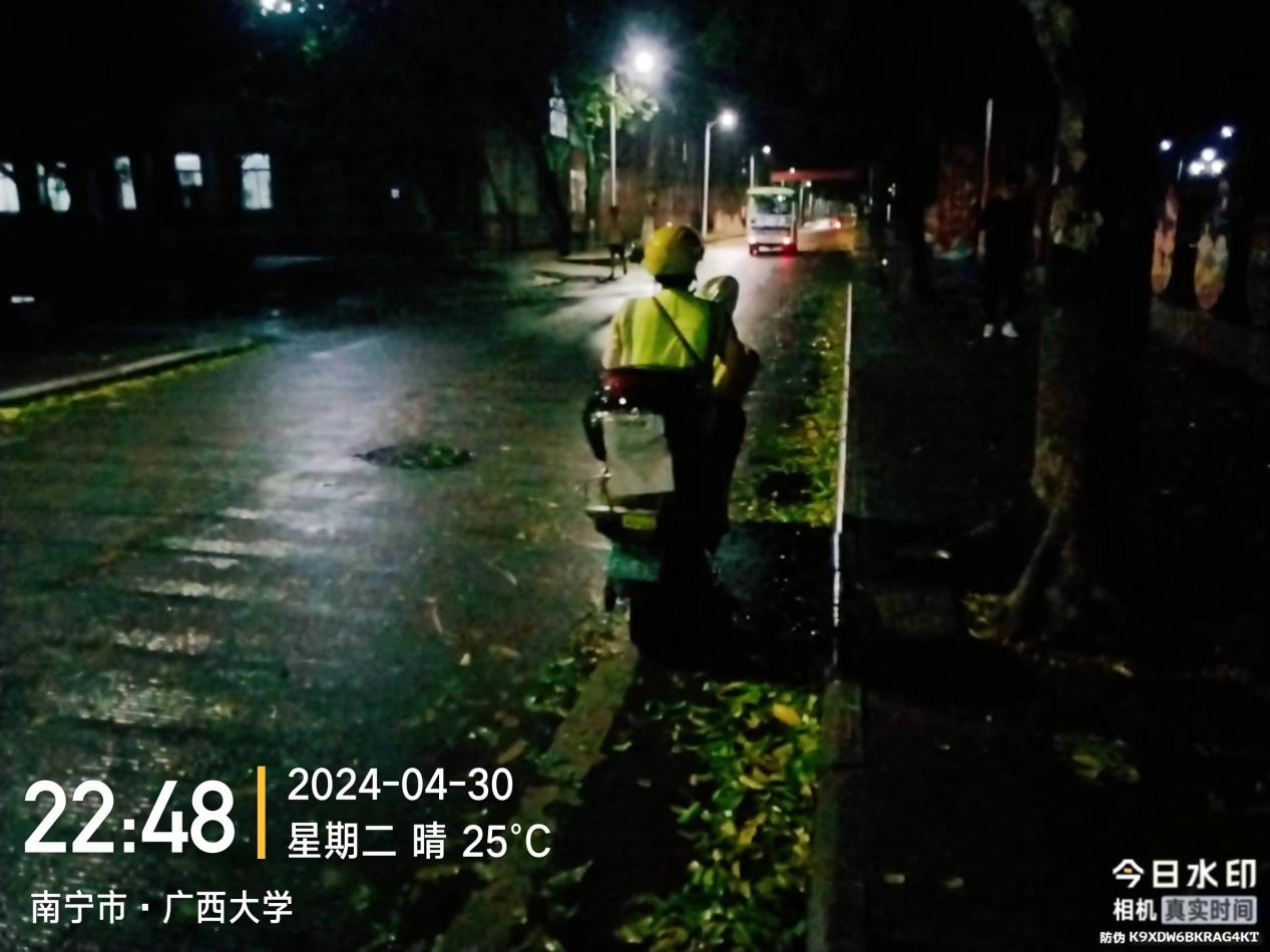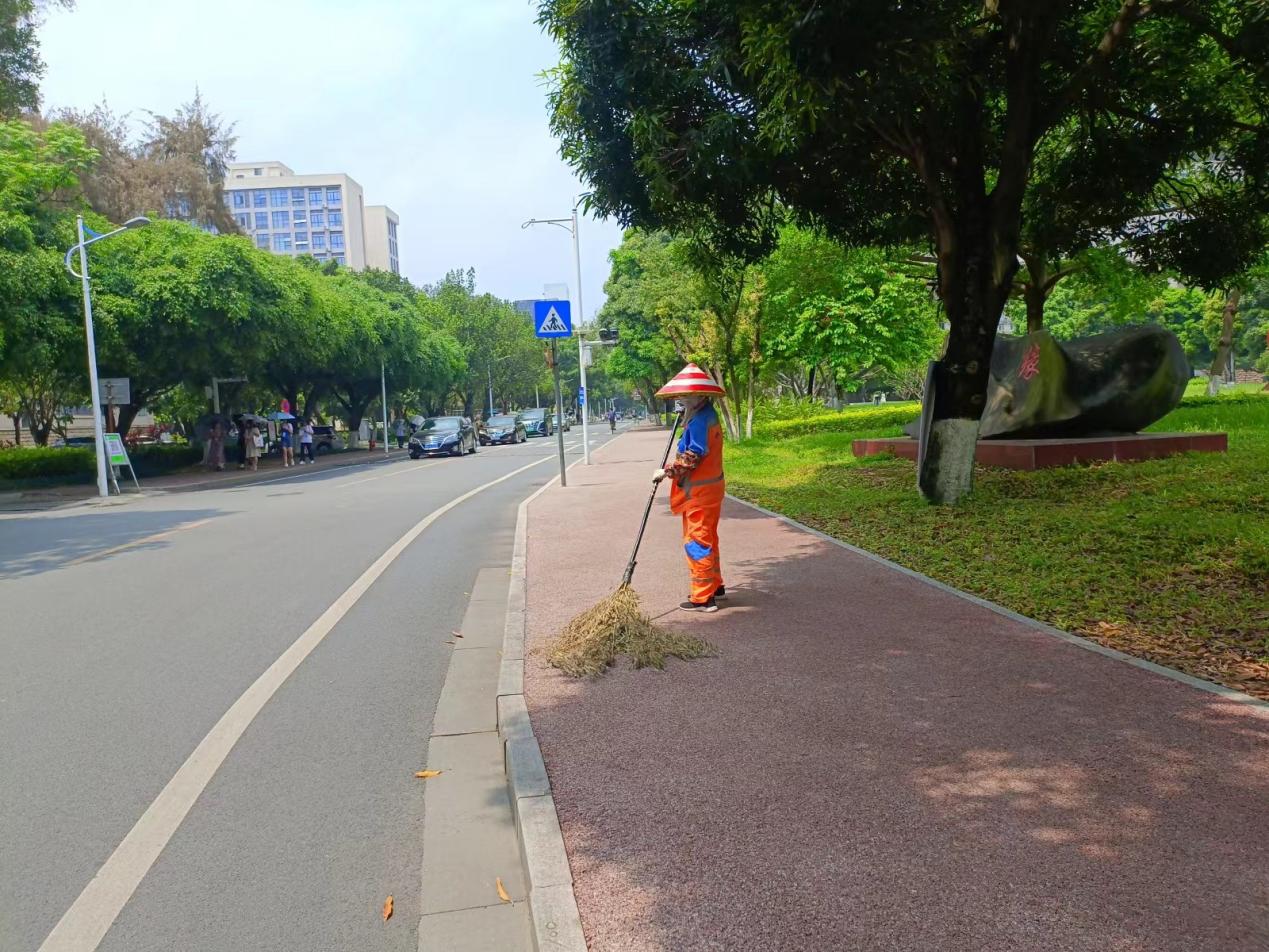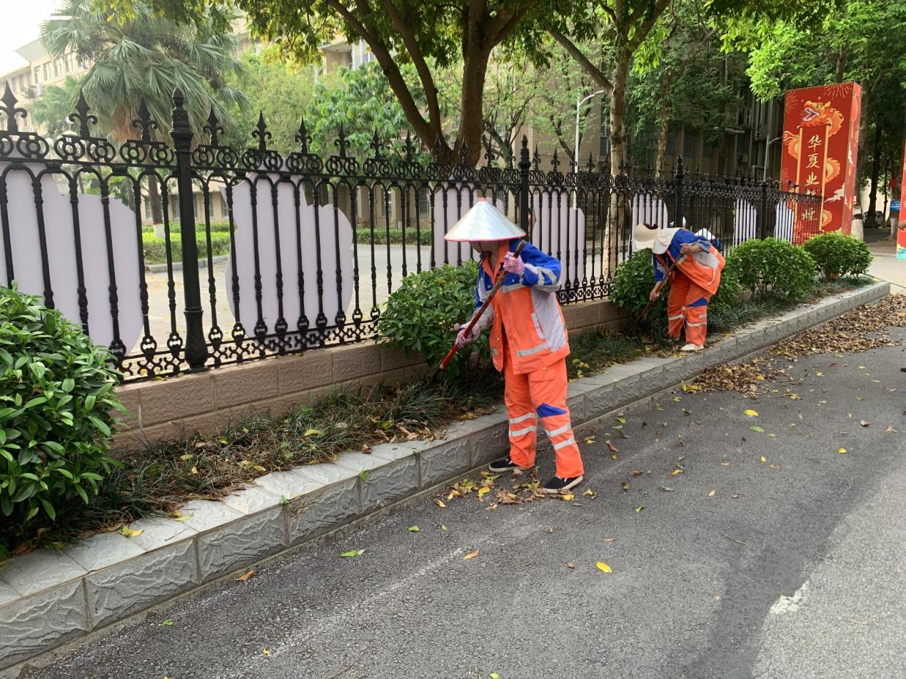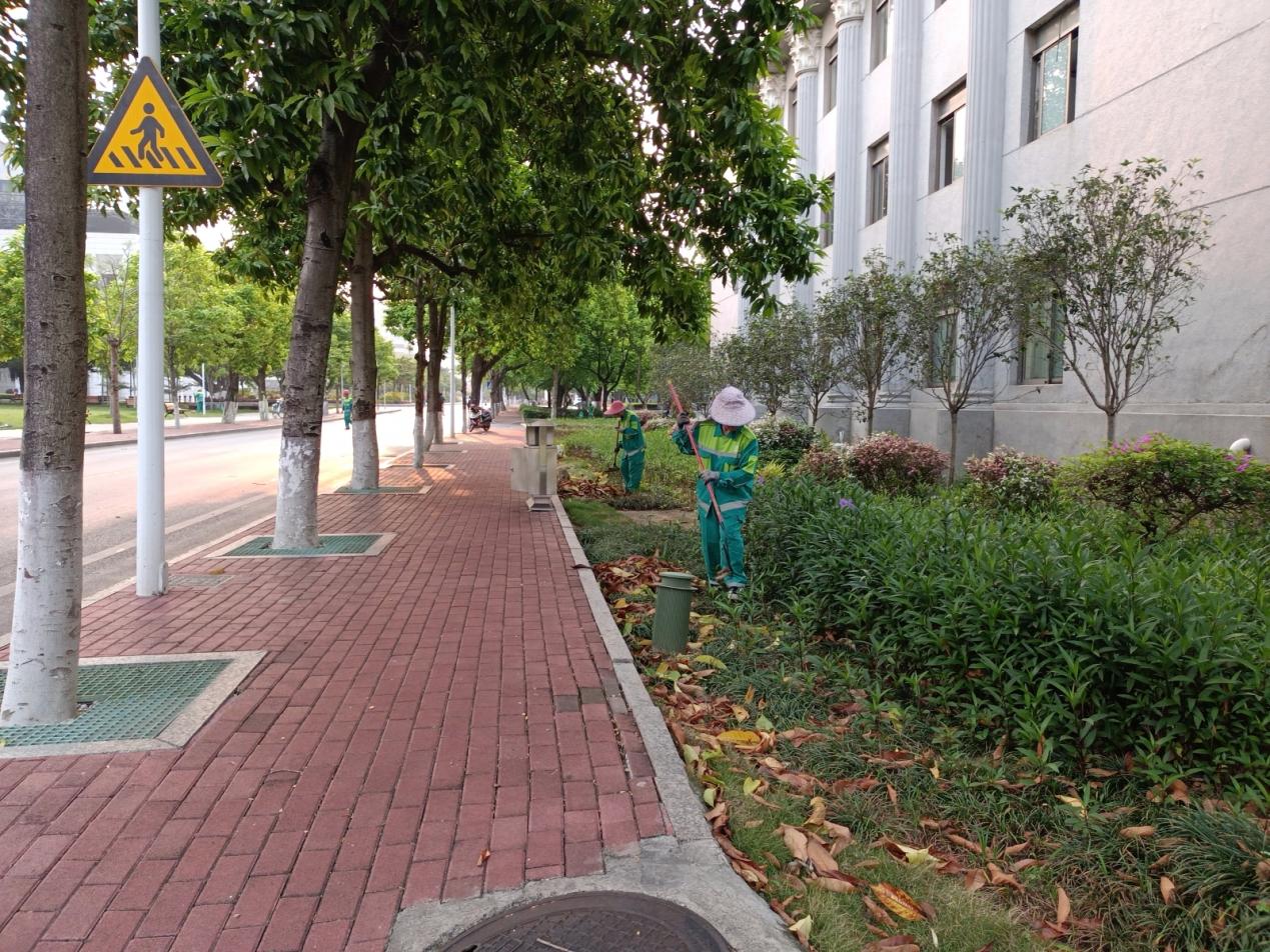 本周为五一节假期,校园环卫保洁人员坚守岗位,继续做好各公共区域环境卫生进行日常清扫保洁工作,清理绿地落叶和绿化带砖块、白色垃圾等,保持干净整洁的校园环境。