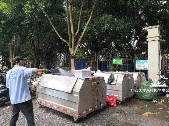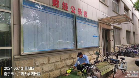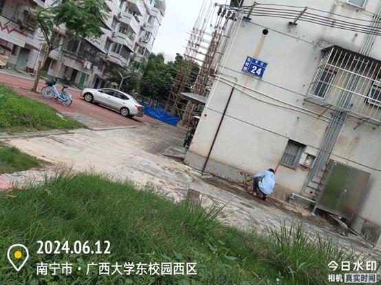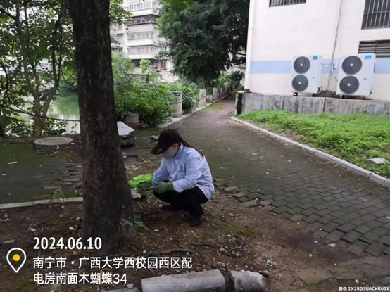环卫保洁板块继续做好校园各区域环境卫生清扫保洁工作,保持干净整洁的校园环境。本周南宁市发布有暴雨橙色预警,环境办和博世科物业启动应急预案,全面展开暴雨应急措施。重点针对校园内可能出现内涝的区域,加大排险巡查力度,同时,对雨水井、排水沟、污水井等进行检查并清除杂物,确保排水系统畅通。