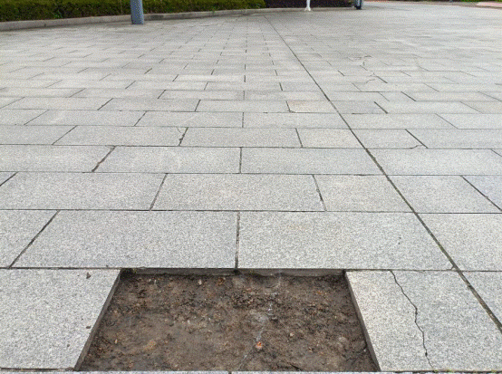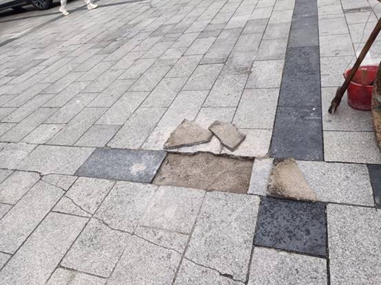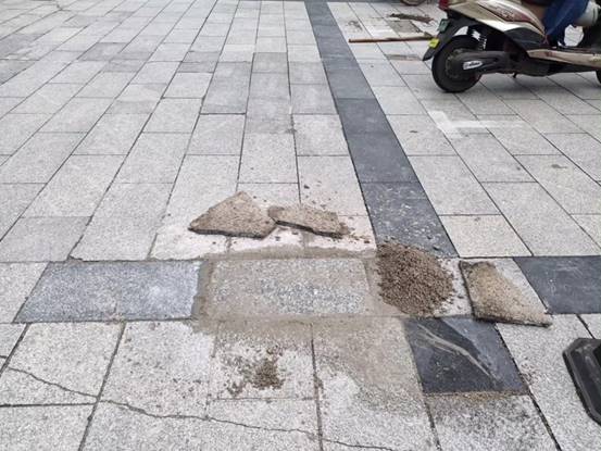 育才广场破损地砖修复前