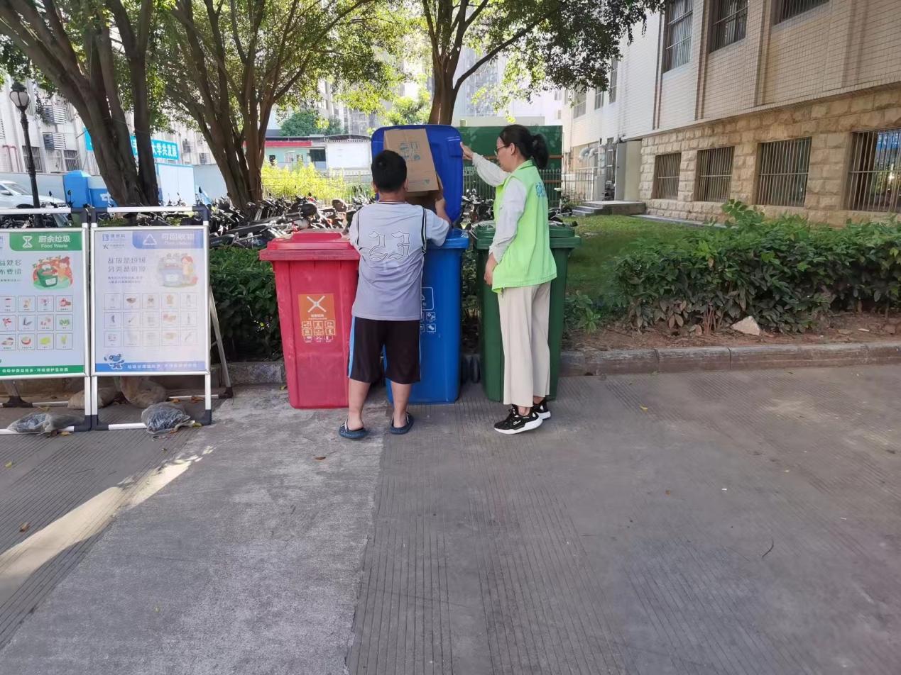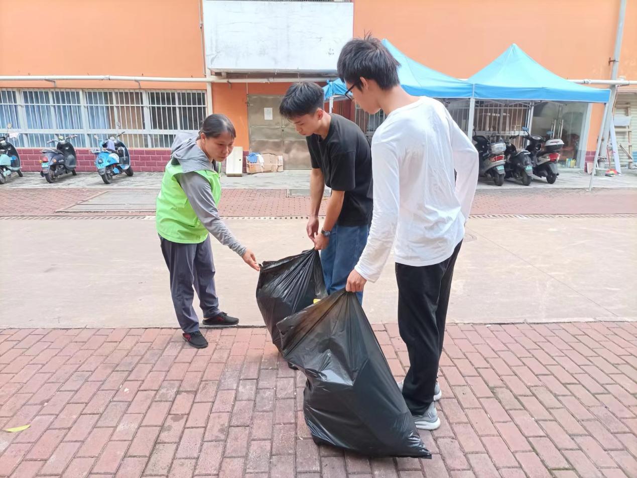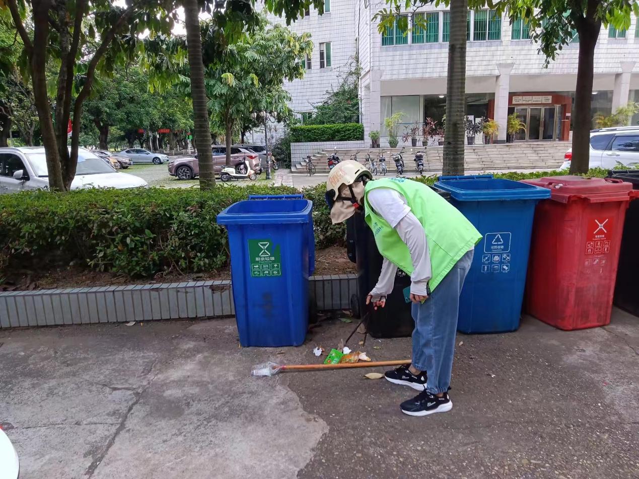 垃圾分类督导:按计划完成垃圾分类督导和宣传、清洁垃圾分类宣传展板、派发垃圾分类宣传单等工作,对校园进行全面巡查,及时处理发现的问题。