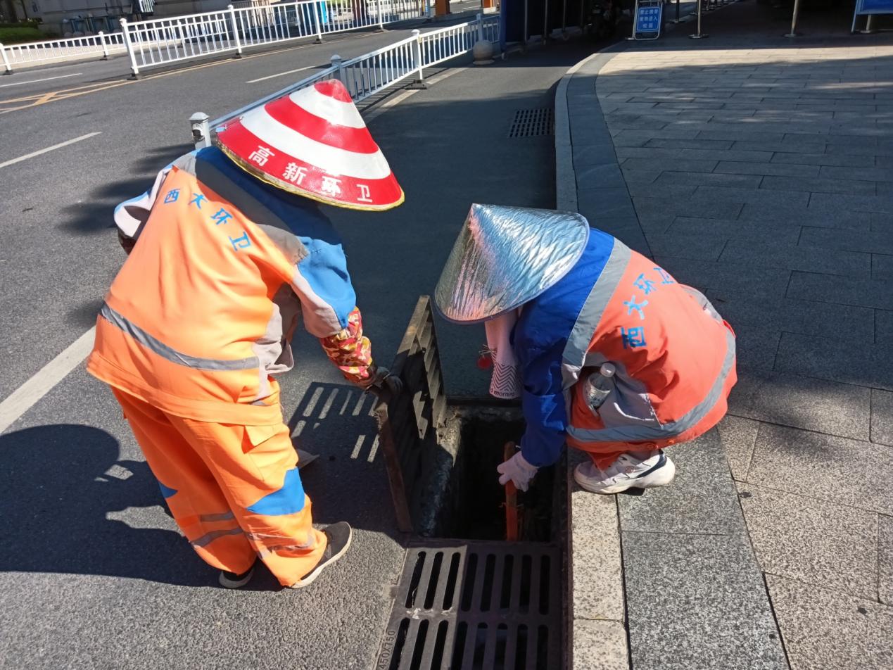 本周继续做好校园各区域环境卫生清扫保洁工作,环卫工人每天清晨5点半就开始清扫校园的各大校道及支道,环卫保洁总面积近80万㎡,人均6800㎡。与此同时,由于近期雨水天气较多,环卫保洁员工针对校园内可能出现内涝的区域,加大排险巡查力度,对雨水井、排水井、污水井等进行检查并清除井内杂物,确保排水系统畅通。在雨后及时清扫校内路面积水、清理落叶、垃圾等,保障校内环境卫生及行人、车辆安全通行。