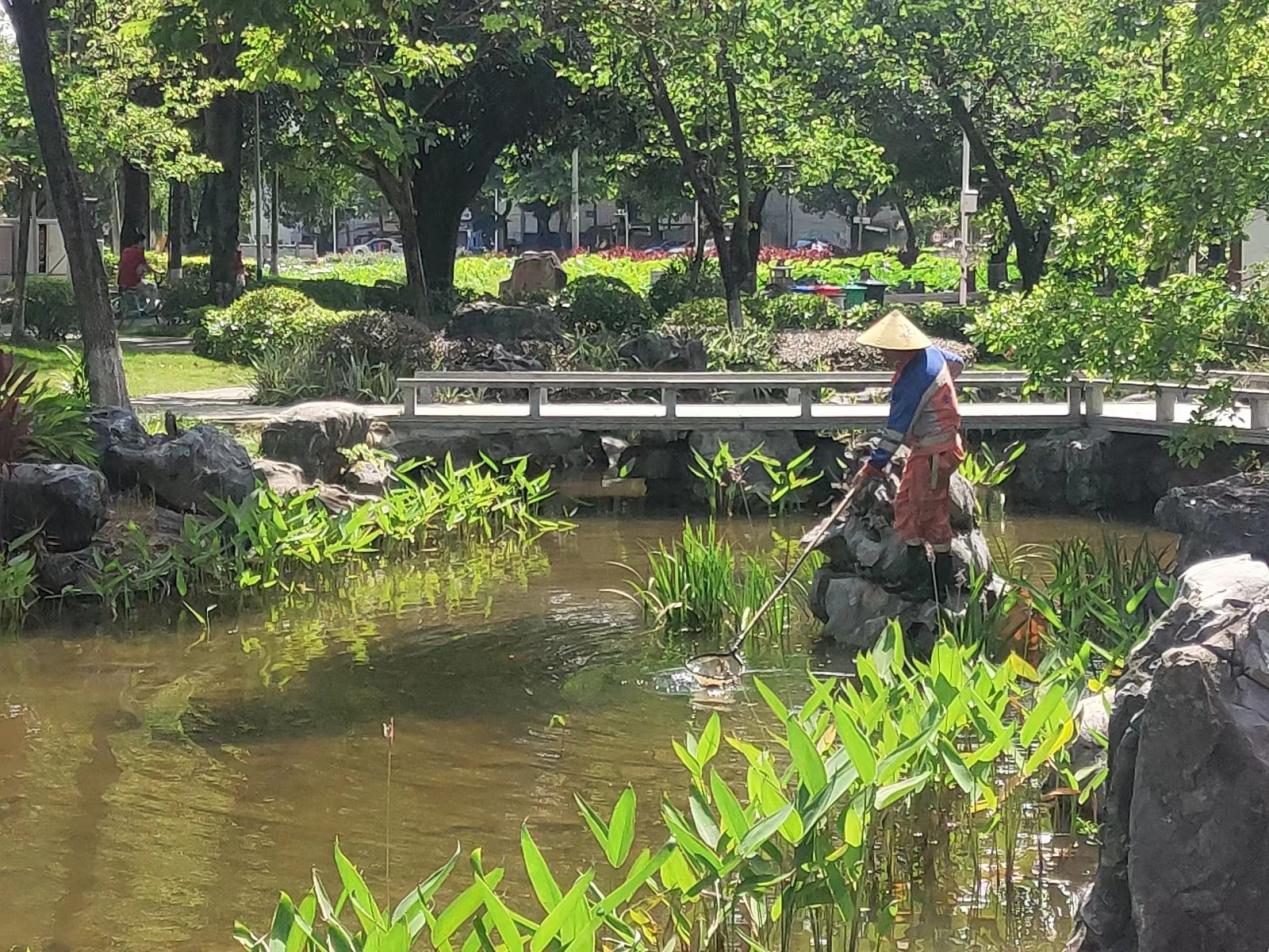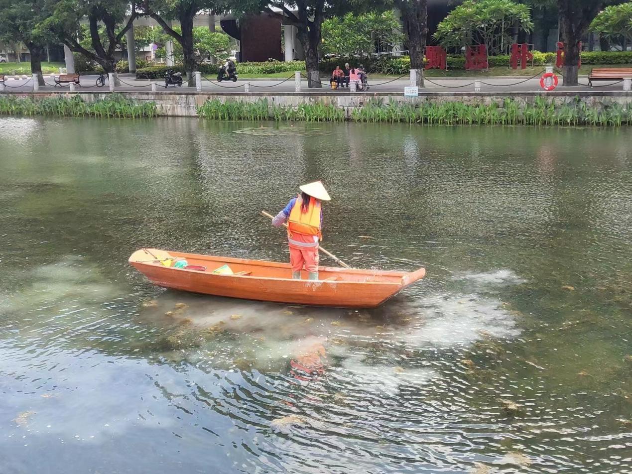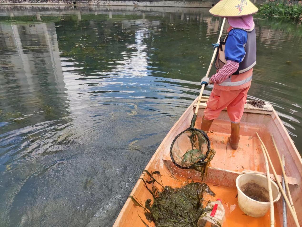 持续做好16个景观湖和4个景观池的湖水治理工作,清理大面积油膜,防止堆积,做到水面干净整洁;控鱼常态化进行,本周集中对大碧云湖、小碧云湖、爱莲湖、莲湖捕捉杂鱼,总计捕捉杂鱼240斤;各湖驳岸及时清理福寿螺及螺蛋,打捞上浮福寿螺及螺蛋总计410斤;对月牙湖、大碧云湖、小碧云湖、莲湖和爱莲湖进行水质消毒;莲湖、绿榕湖、鉴湖进行水草修剪和青苔防治工作,绿榕湖、彩蝶湖、翠湖裸露区域进行水草补种;小碧云湖、爱莲湖、鉴湖、莲湖打捞水底丝状藻青苔;绿榕湖、月牙湖、荷湖、紫荆湖南段修剪枯萎荷叶;秋实湖南岸补种绿植;月牙湖进行第二轮水面蓝绿藻治理;16个景观湖和4个景观池总计清运垃圾10吨。