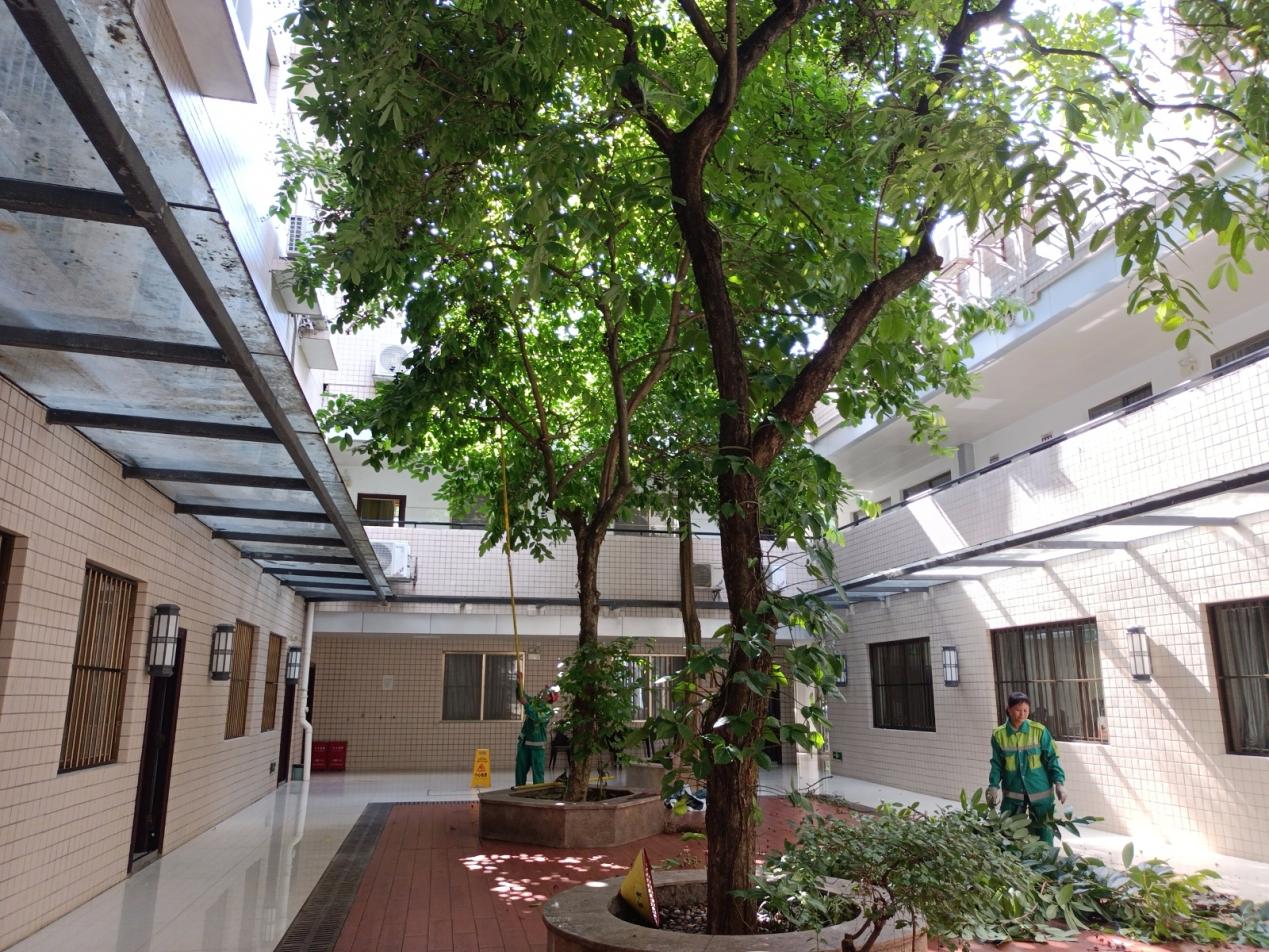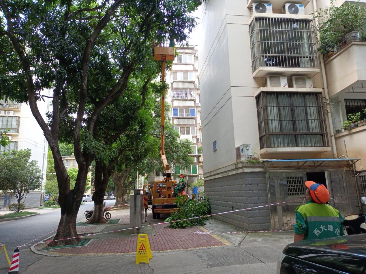 树枝修剪:对集团大院、西校园北区、西体育场、东校园东区、劝学岛、行健学院、新东园、东校园西区23栋、离退休教职工活动中心、博萃路、六教北面等区域树木枯枝、低枝、寄生枝和靠近电线、建筑物、路灯及摄像头等设施的树枝进行修剪。。
