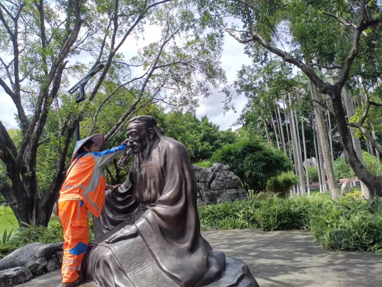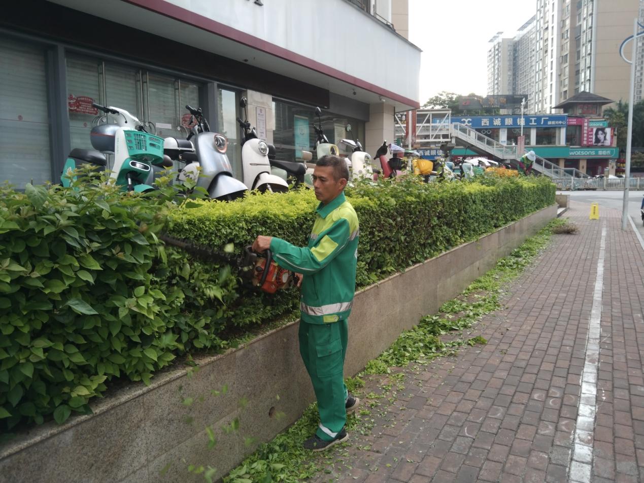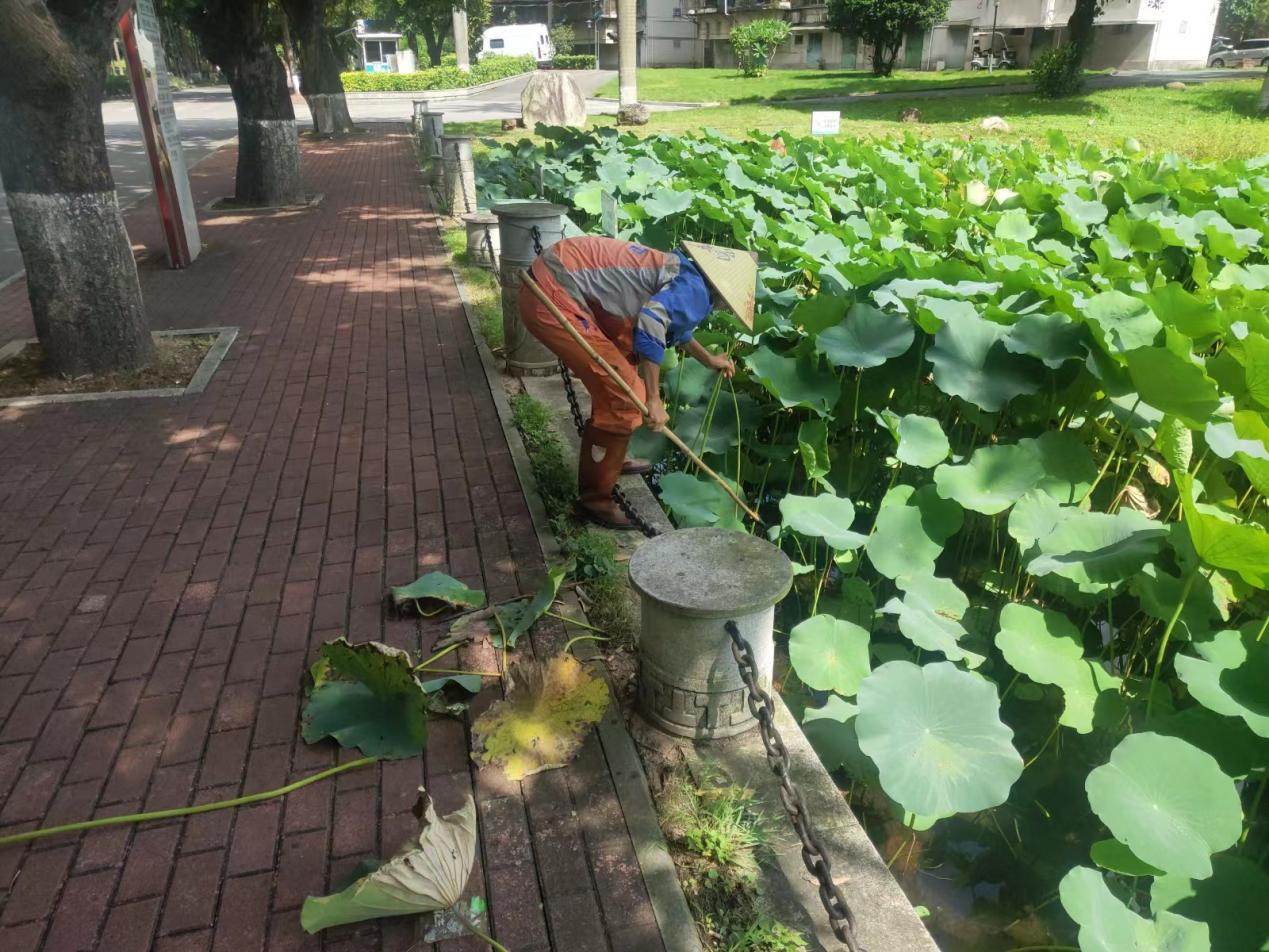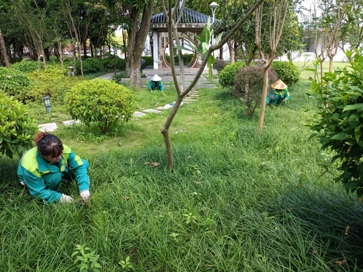 日常养护工作:对劝学岛、大学生活中心、行健学院、西体育馆、崇左桥、大礼堂、熊猫园、新东园、六教、资环材学院、物理学院、鉴湖、镜湖、校办周边、西校园西区、北区、土木学院、东高住宅楼、南大门等区域进行拔杂草、树木病虫害防治、清理菟丝子、草坪修整、绿篱修整、松土、绿地施肥、淋水、绿地清理落叶、枯叶和残叶等其他绿化养护作业。