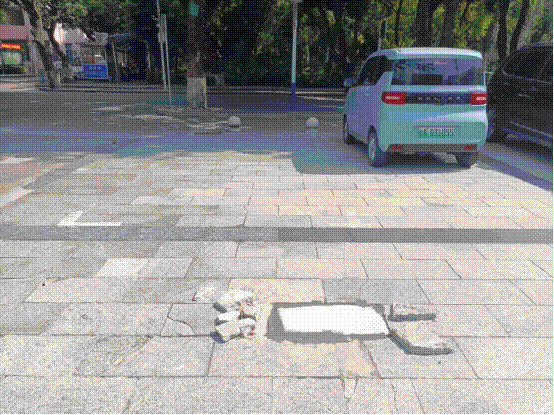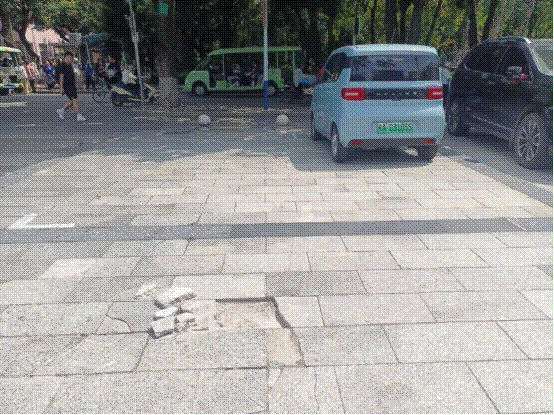 碧湖苑餐厅广场地砖破损修复前