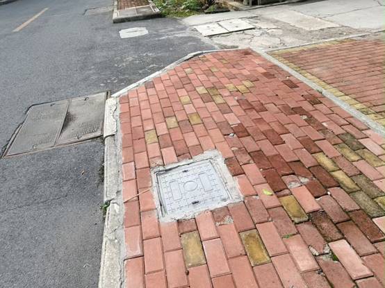 西校园北区30栋人行道井盖破损更换前