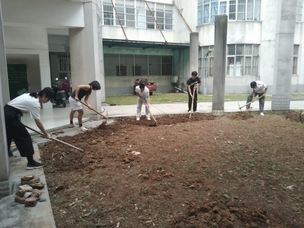 学生在十教内廷进行劳动课实践