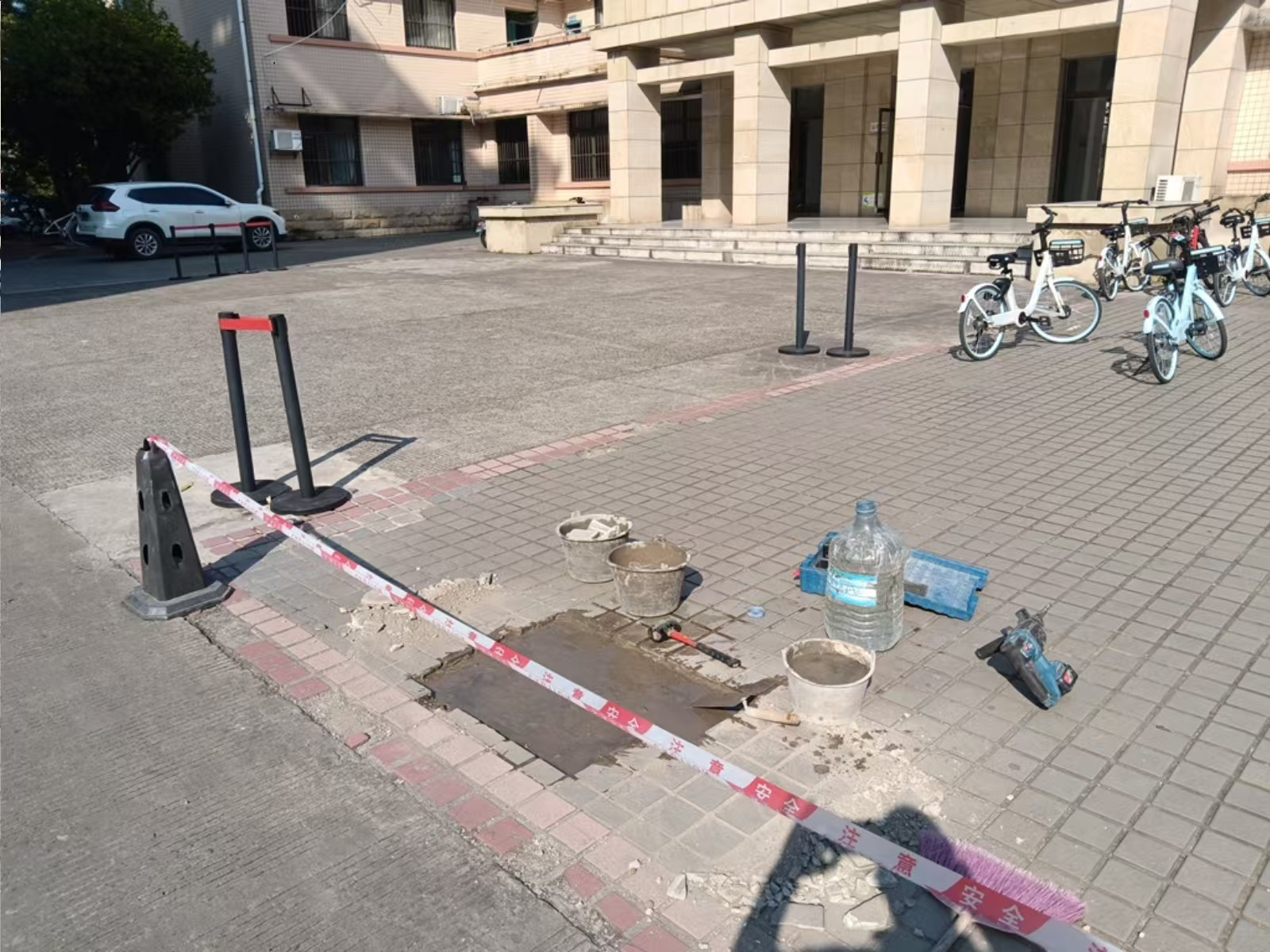 艺术学院门口地砖破损修复后
