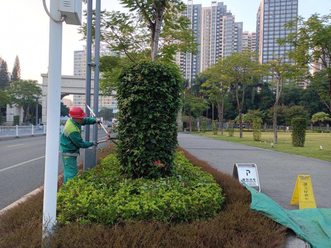 本周绿化工作情况汇总:机械打草16541平方米;绿地清除杂草12541平方米;绿篱修剪7331平方米;清理绿化垃圾521立方;造型修剪约143棵;日常树木修剪包括低枝、侧枝、寄生、靠近电线、建筑物、路灯及摄像头等设施树枝等修剪1214(次/棵);绿植淋水75412平方米;绿地树木病虫害防治3119平方米;树木专项蛀干虫检查防治68棵;危树整棵清除7棵。