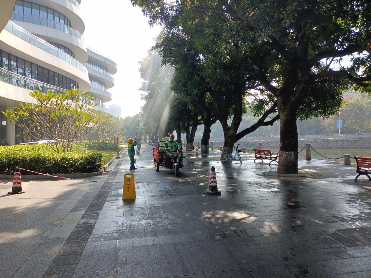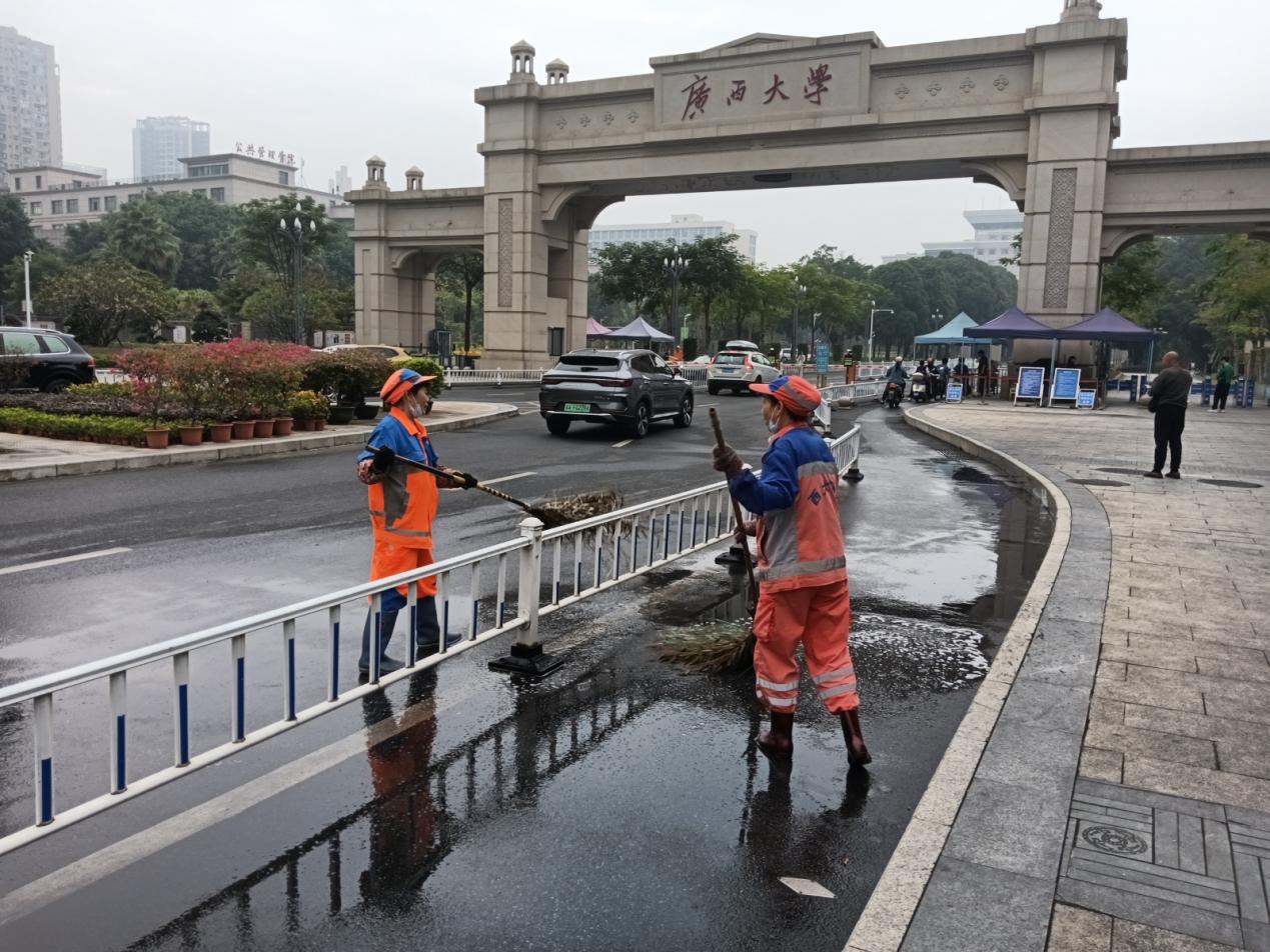 本周环卫保洁人员继续做好校园各区域环境卫生清扫保洁工作,采用“人机结合”的清扫校园的各大校道及支道,日常及时清理绿地枯枝落叶和白色垃圾,清洗铜像、果皮箱、清理水沟、雨篦子等,保持校内环境干净整洁。环卫保洁总面积近80万㎡,人均保洁6800㎡。本周还做好国际标准化组织钢-混凝土组合结构和混合结构分委会(ISO/TC 71/SC 9)秘书处揭牌、beats365亚洲版第54届运动会等活动的环境卫生保障工作。