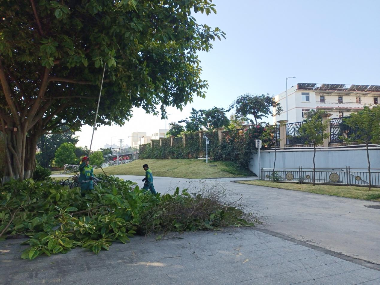 树木修剪:对东校园东区24栋、东高生态停车位、语言中心、网络楼、西校园学生公寓1到5栋内、集团大院内、生科院小树林,西校园东区11栋、东校园中区13栋、碧云湖周边、西校园中区6栋、农学院、木工厂路、农场路、医学院、后勤楼、西校园中区9栋西面、学生公寓东19栋围墙区域处理靠近建筑树枝、枯枝,寄生树、低枝修剪。