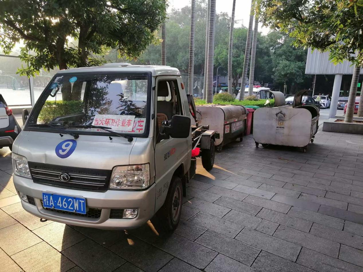 垃圾清运:按规定时间路线清运校园垃圾,做到垃圾日产日清,并对垃圾桶和勾臂箱进行清洗和消杀。本周清运生活垃圾430.5吨,大件垃圾11.7吨,绿化垃圾521立方米。