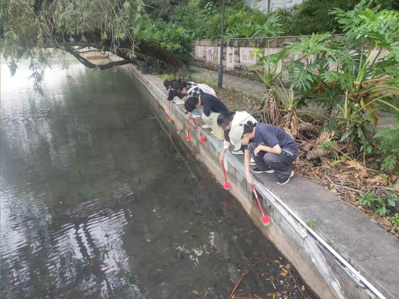 劳动课学生清理福寿螺蛋