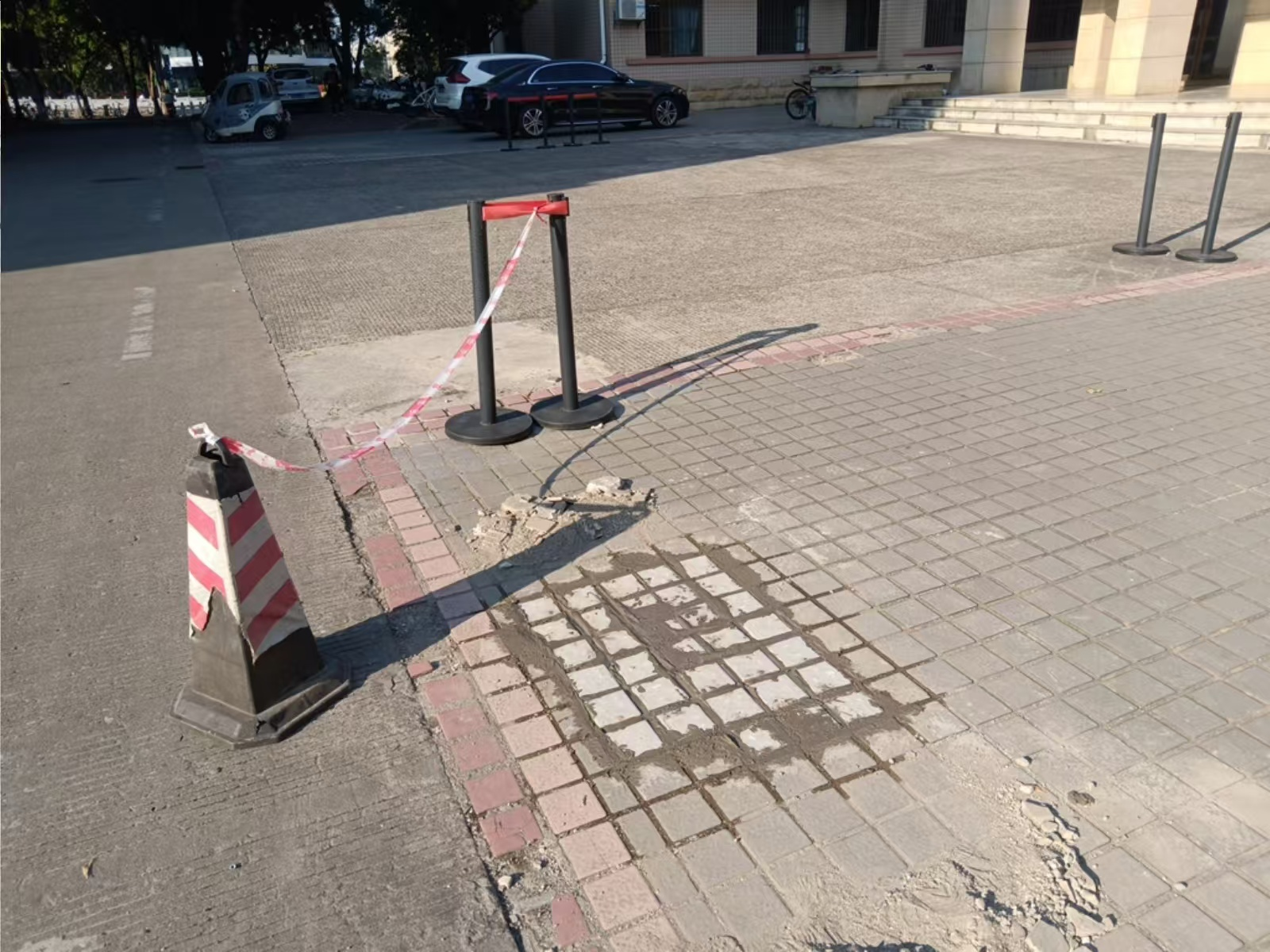 艺术学院门口地砖破损修复前