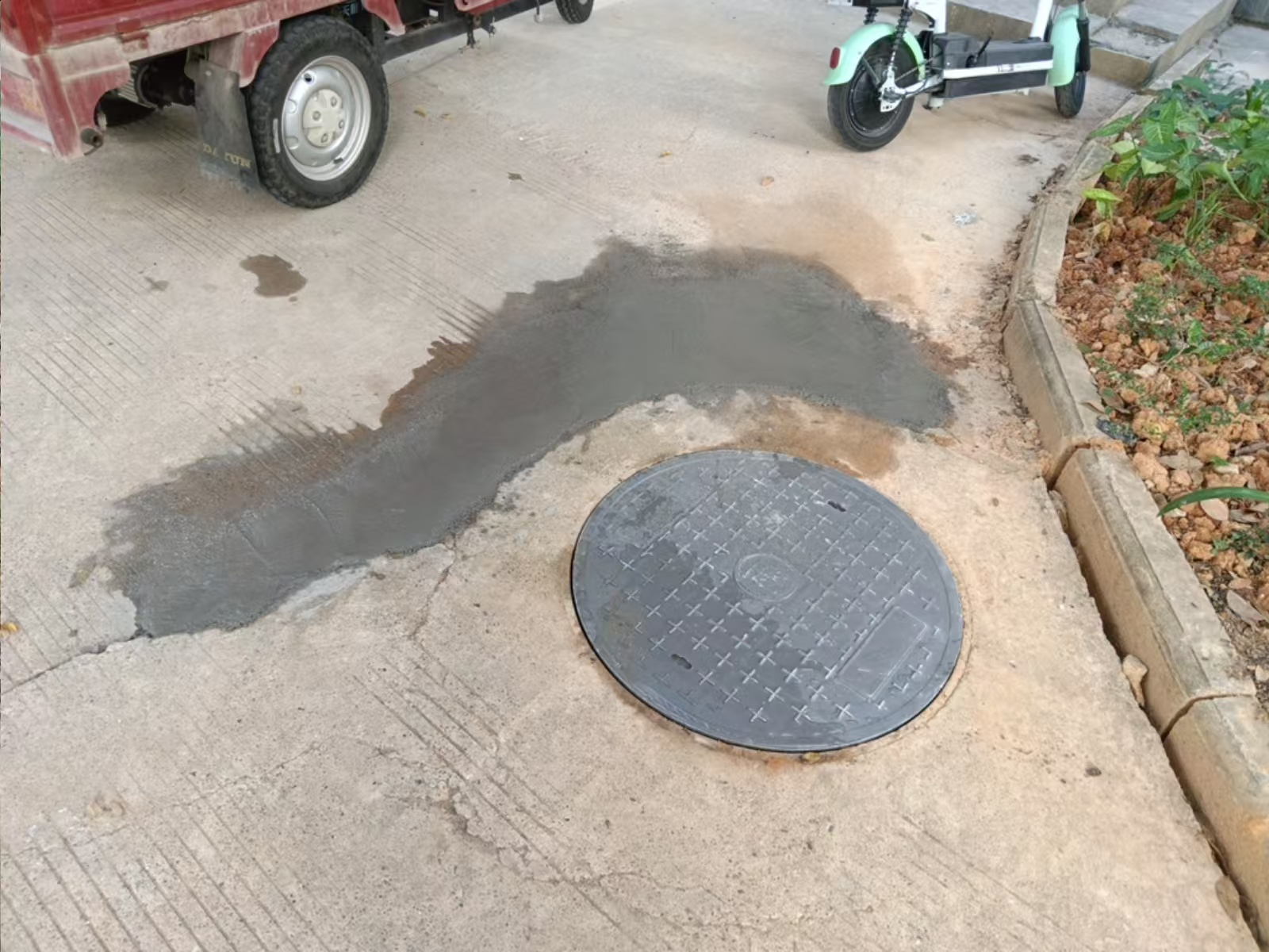 学生公寓东34栋东头井盖破损更换后