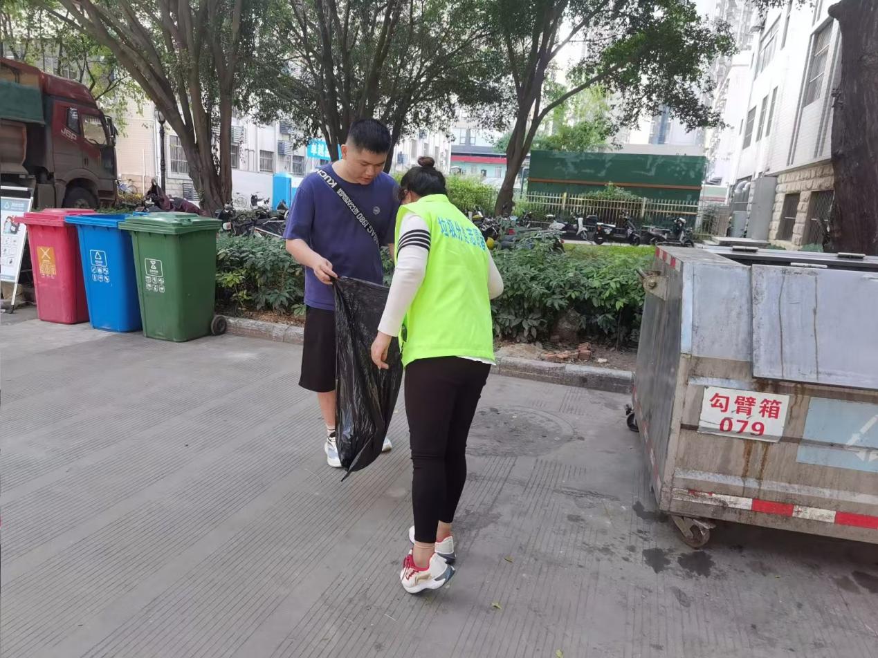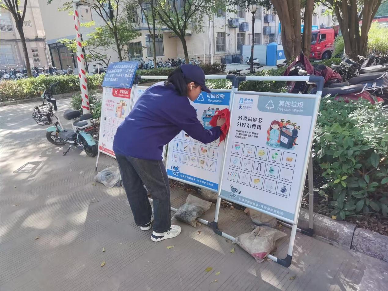 垃圾分类督导:按计划进行垃圾分类督导和宣传、展板清洁和宣传单派发等工作,对校园进行全面巡查,及时处理发现的问题。