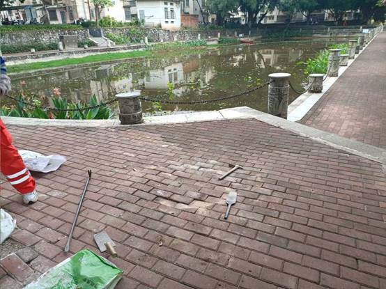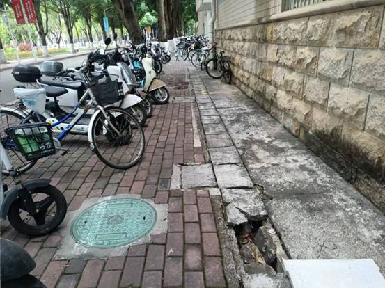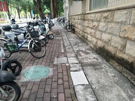 公共区域维修板块继续做好校内公共区域地面、路沿石、路灯、水沟盖板、健身器材等设施排查、维修、抢修工作;及时对校内雨篦子、井盖、管道等排水系统进行排查、疏通。本周对校内公共区域道路路面、路灯、盖板等维修共21处,排水口疏通25次。