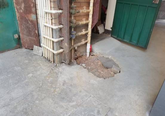东校园中区18B栋地砖破损修复前