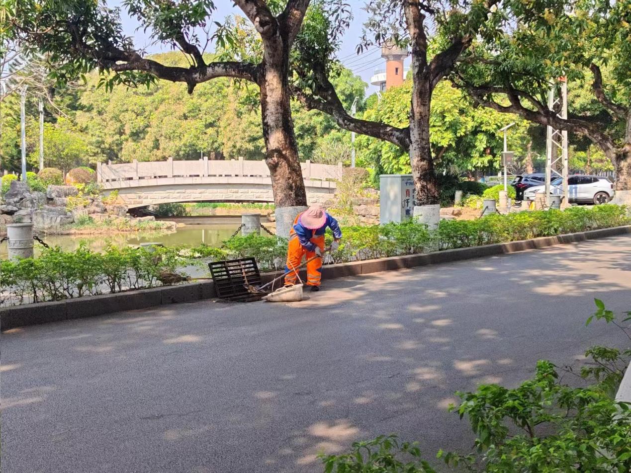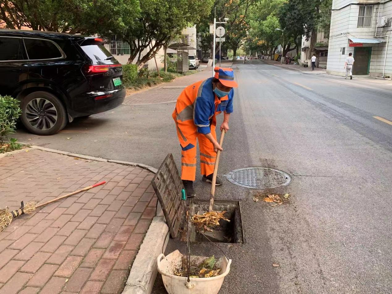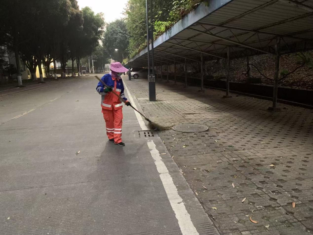 本周环卫保洁人员继续做好校园各区域环境卫生清扫保洁工作,每日清晨五点半开始采用“人机结合”的方式清扫校园的各大校道及支道,日常及时清理绿地枯枝落叶和白色垃圾,清洗铜像、果皮箱、清理水沟、雨篦子等,保持校园环境干净整洁。环卫保洁总面积近80万㎡,人均保洁6800㎡。